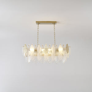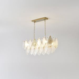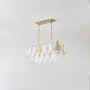 The Autumn Leaf Glass Linear Chandelier is a beautifully designed lighting fixture that mimics the elegance of falling autumn leaves. It features a series of intricately crafted glass leaves in warm hues of amber, gold, and deep red, creating a stunning visual effect when illuminated. Its elongated shape makes it perfect for dining areas or over kitchen islands, adding a touch of nature-inspired elegance to your space. This piece combines artistic craftsmanship with functional lighting, evoking the serene beauty of an autumn landscape.
