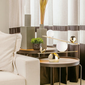 Dive into the realm of sleek sophistication with our Balance Table Lamp, a testament to modern design and functionality. Its striking mechanical balance of glass globes seemingly defies gravity, offering an interactive experience as it illuminates your space. Crafted for the contemporary connoisseur, this lamp is not just a light source but a conversation starter, perfect for any desk or side table seeking a touch of elegance and innovation. Add this stunning piece to your collection and let balance be the beacon that brightens your home.