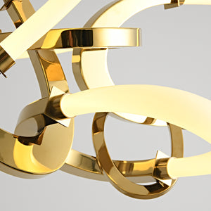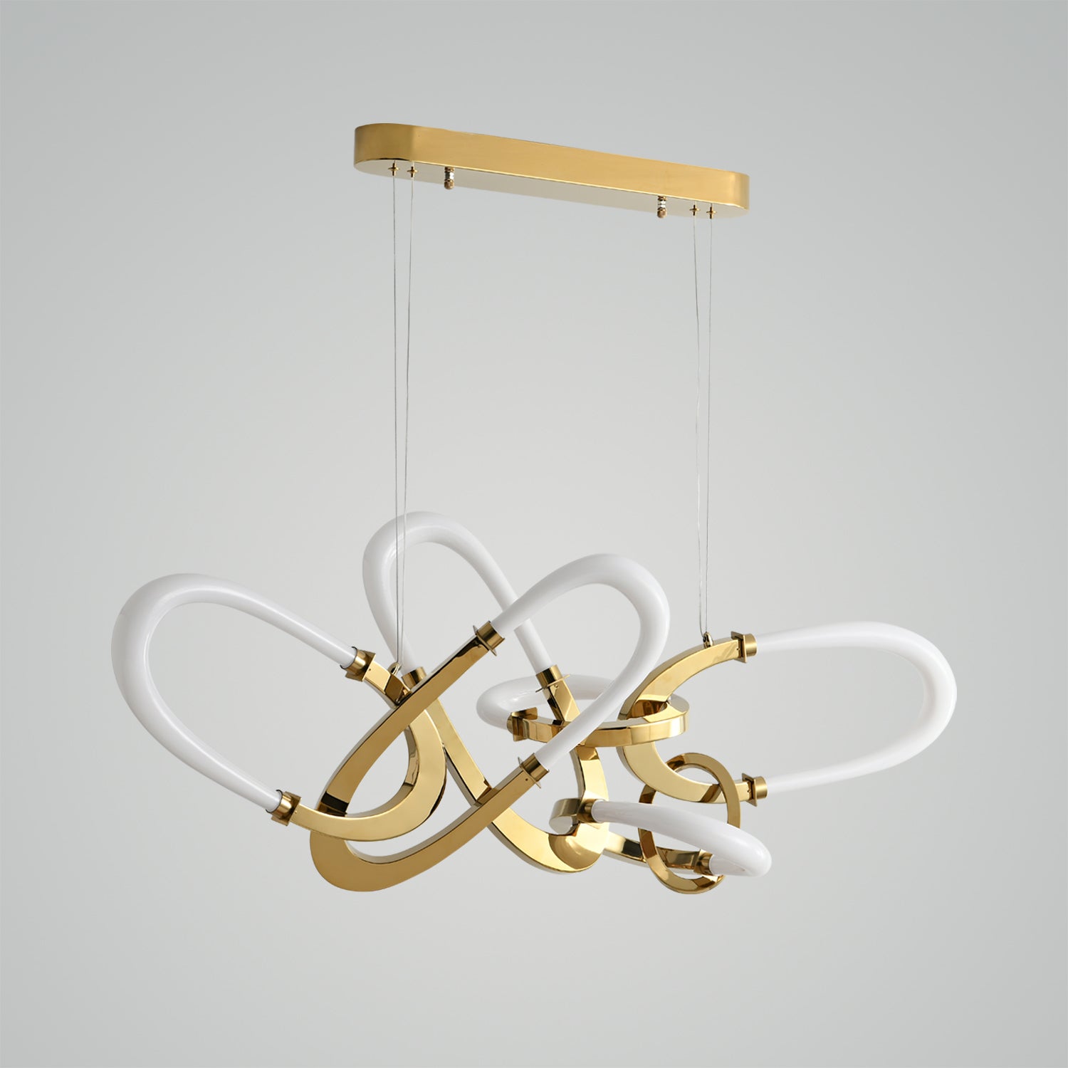 The Bouchon Chandelier stands out as one of the most innovative and spectacular designs. It features an elegant chain of interlocked circular pendants made of solid bronze, paired with contoured hand-blown Murano glass. When illuminated, the chandelier creates an almost magical illusion, with the interlinked pendants appearing to suspend in mid-air. It is available in custom sizes and a variety of finishes.