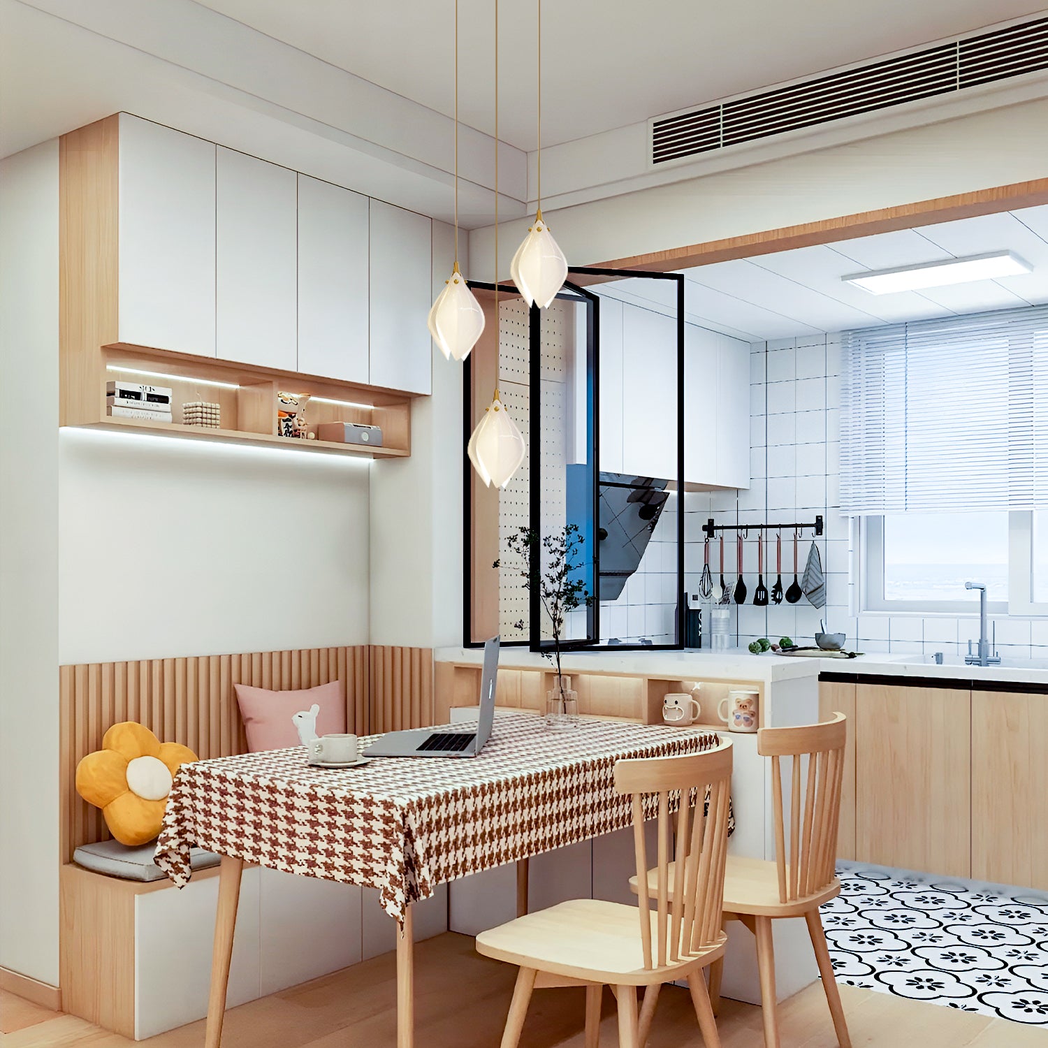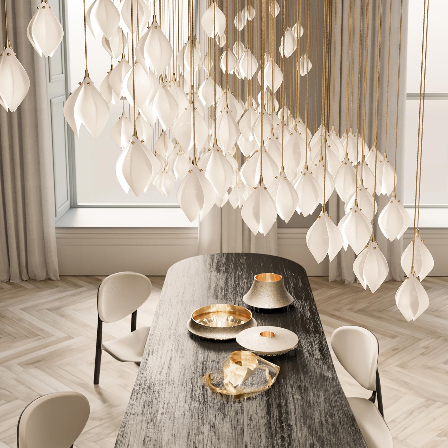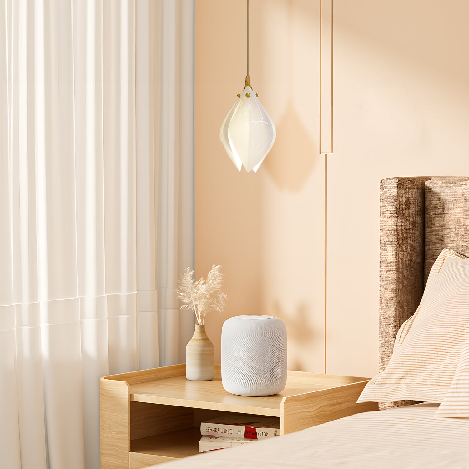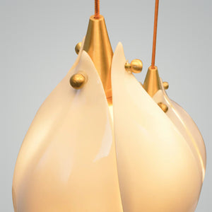Introducing the "Ceramic Flower Pendant Light" – a graceful fusion of nature's beauty and elegant design. This pendant features a delicate, bloom-shaped glass shade in a soft milk white hue, exuding a gentle, diffused light reminiscent of a flower bathed in sunlight. The sleek brass accents add a touch of sophistication, making it a versatile piece for both contemporary and classic interiors. Hang this luminescent petal over your dining area, in a serene bedroom, or as a welcoming gesture in your entryway. The Ceramic Flower Pendant Light is not just a source of illumination; it's a statement piece that brings the serenity and purity of a blossoming flower into your home.