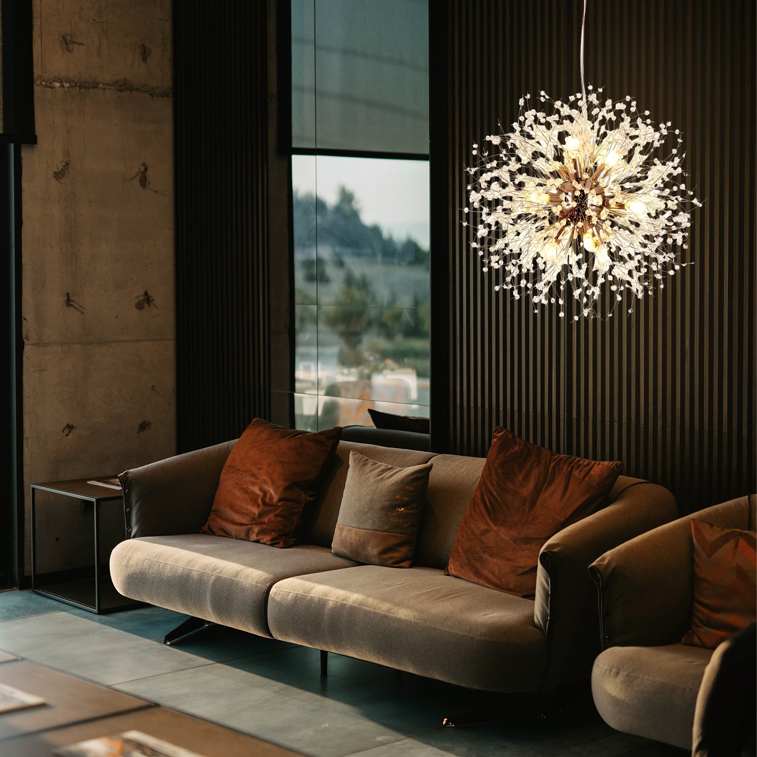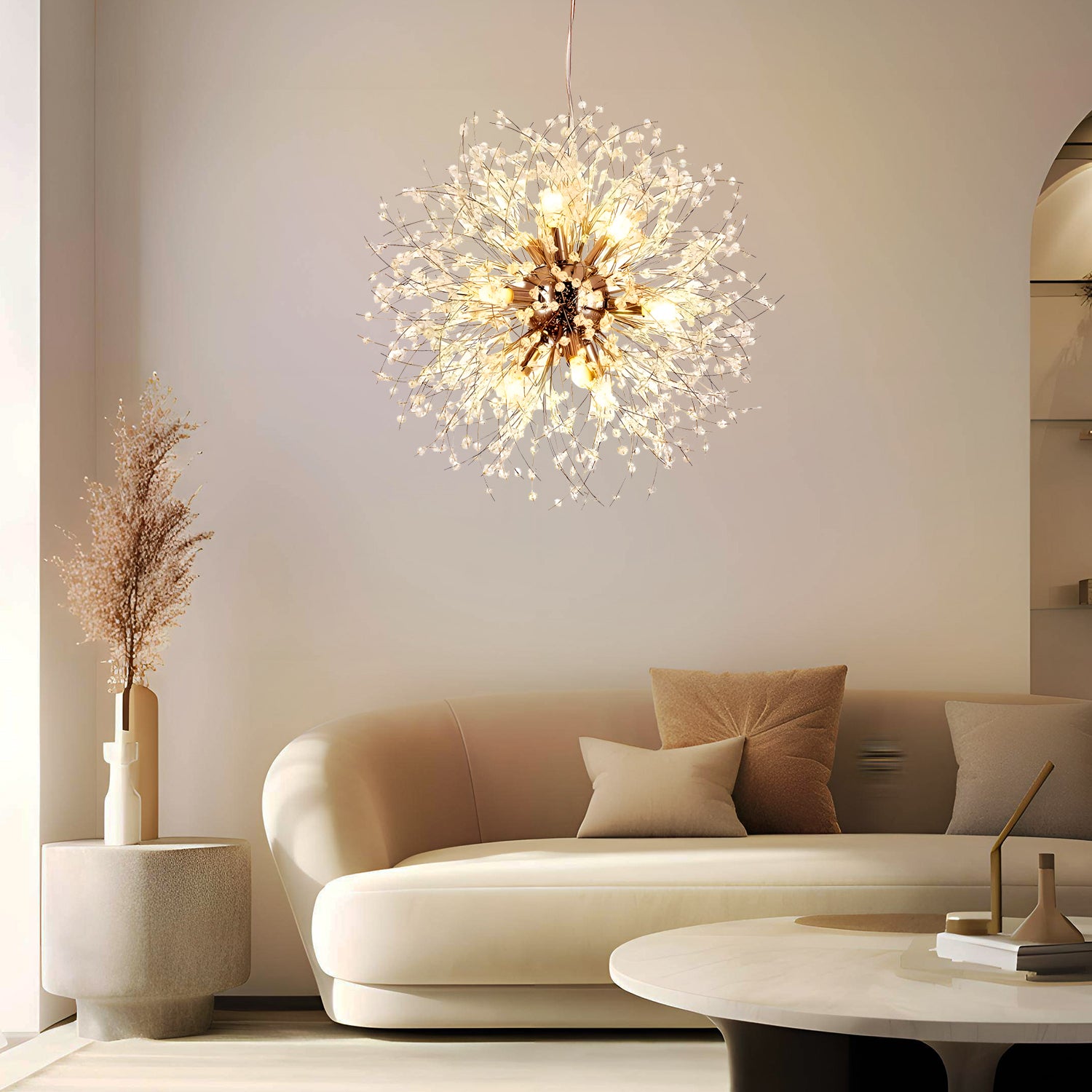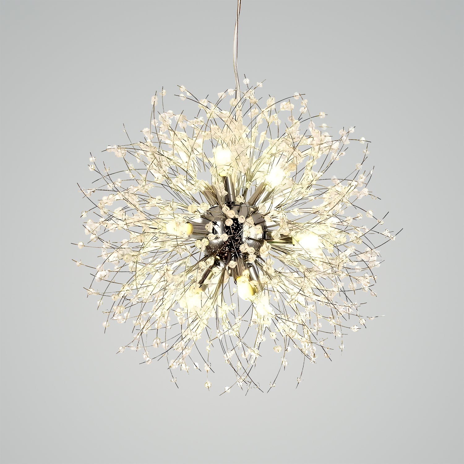 Introducing the Crystal Dandelion Chandelier – where elegance meets contemporary design. This stunning piece is inspired by the natural splendor of a dandelion caught in the first light of dawn. Crafted with precision, each crystal is strategically placed to catch and reflect light, creating a warm, inviting atmosphere. Ideal for modern and sophisticated spaces, this pendant is not just a lighting fixture; it's a statement piece that promises to elevate the luxury and style of your interior decor.