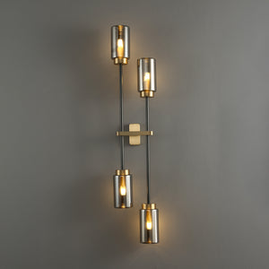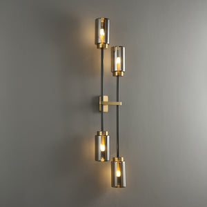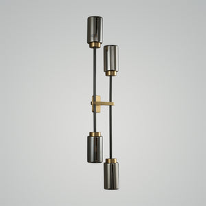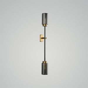 This piece is finished in brass and bronze and features two elegant cylindrical shades that add a touch of luxury to any living space. The shades are available in opal or smoked glass. Our glass shades are hand-blown, and any small air bubbles in the glass are a testament to the handcrafted process, a tradition that dates back thousands of years and continues to this day.