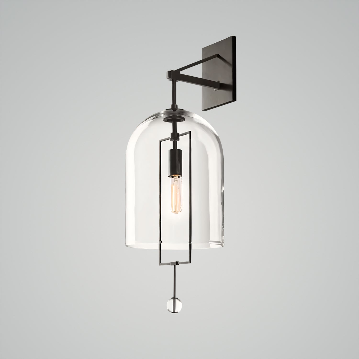 This collection, created by a master glass designer, is inspired by antique scales and other instruments of measure. Blown glass cloches and spheres are suspended from metal frames, achieving perfect equilibrium. Each piece blurs the line between lighting and sculpture, serving both as a radiant focal point and a powerful symbol of balance.