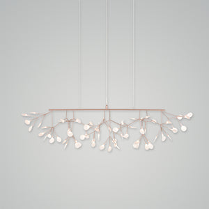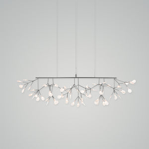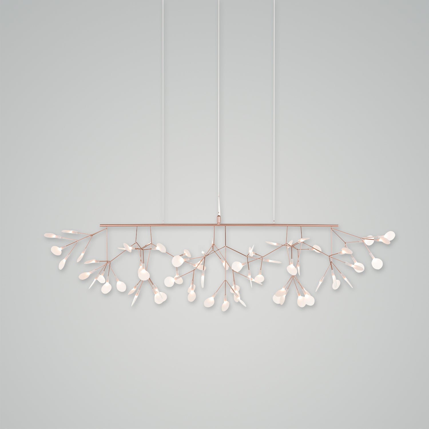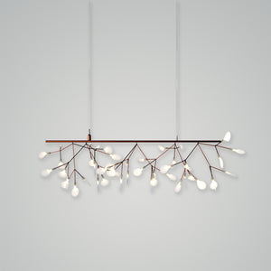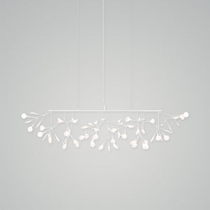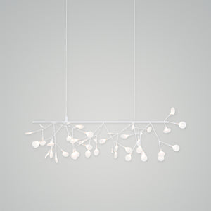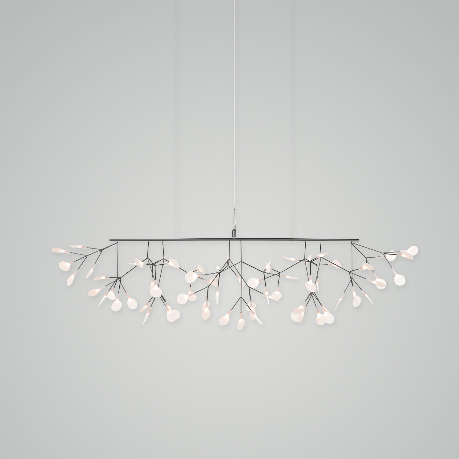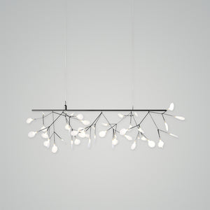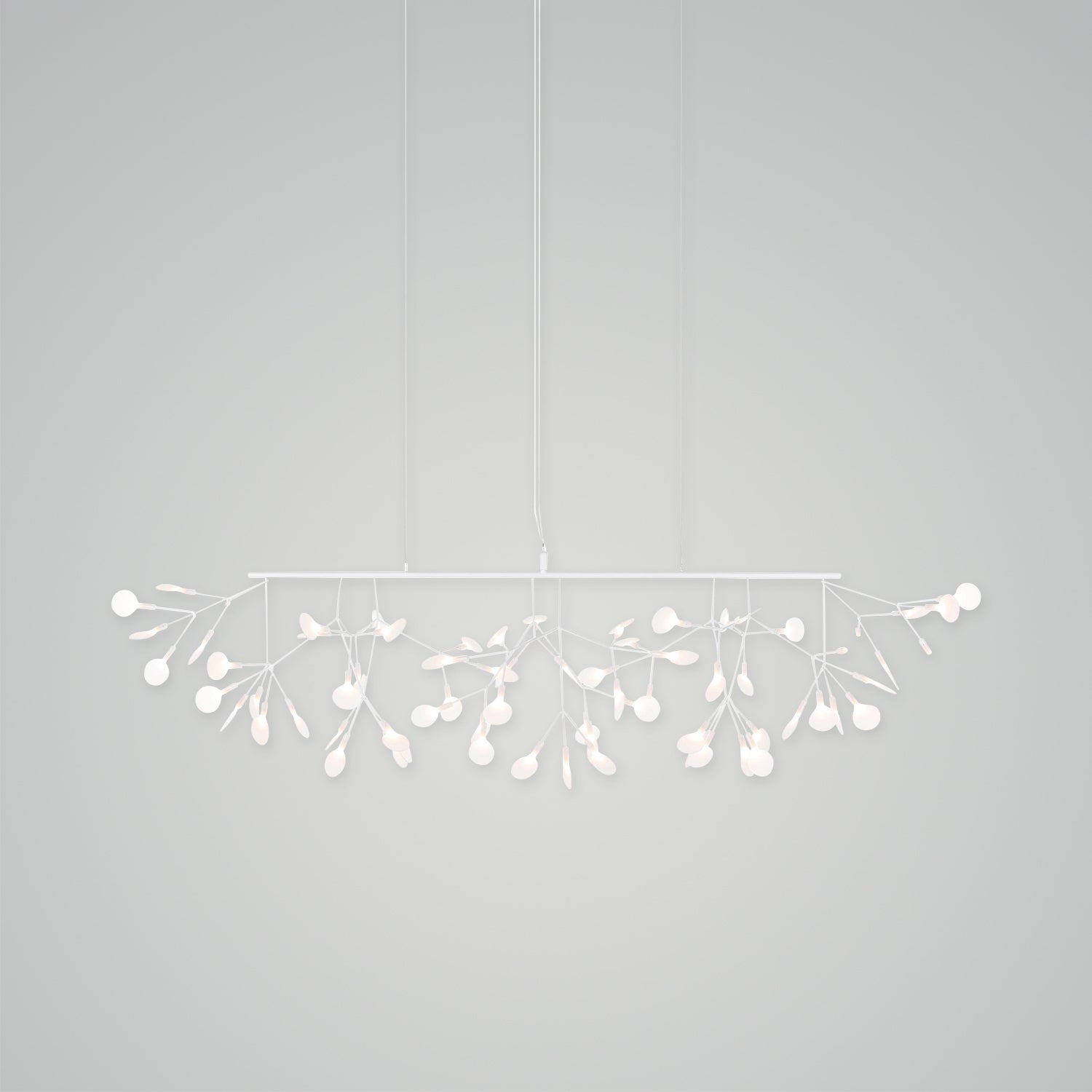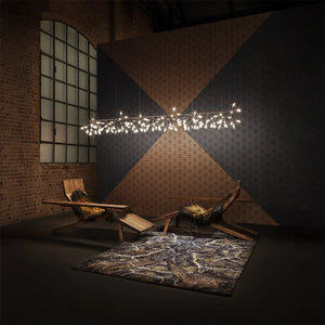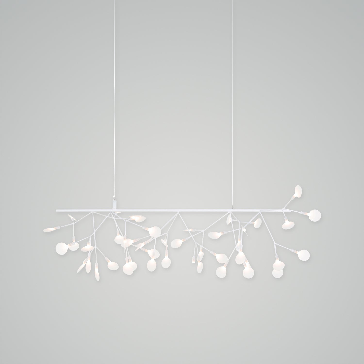 The design of this series combines nature and technology. This lightweight LED light is inspired by a plant. The white leaves branch off from a single stem, creating a highly technical natural structure. The branches of this series are always in bloom and almost limitless in their arrangement. They branch off in straight lines, hanging in circular formations, and forming square geometric shapes.