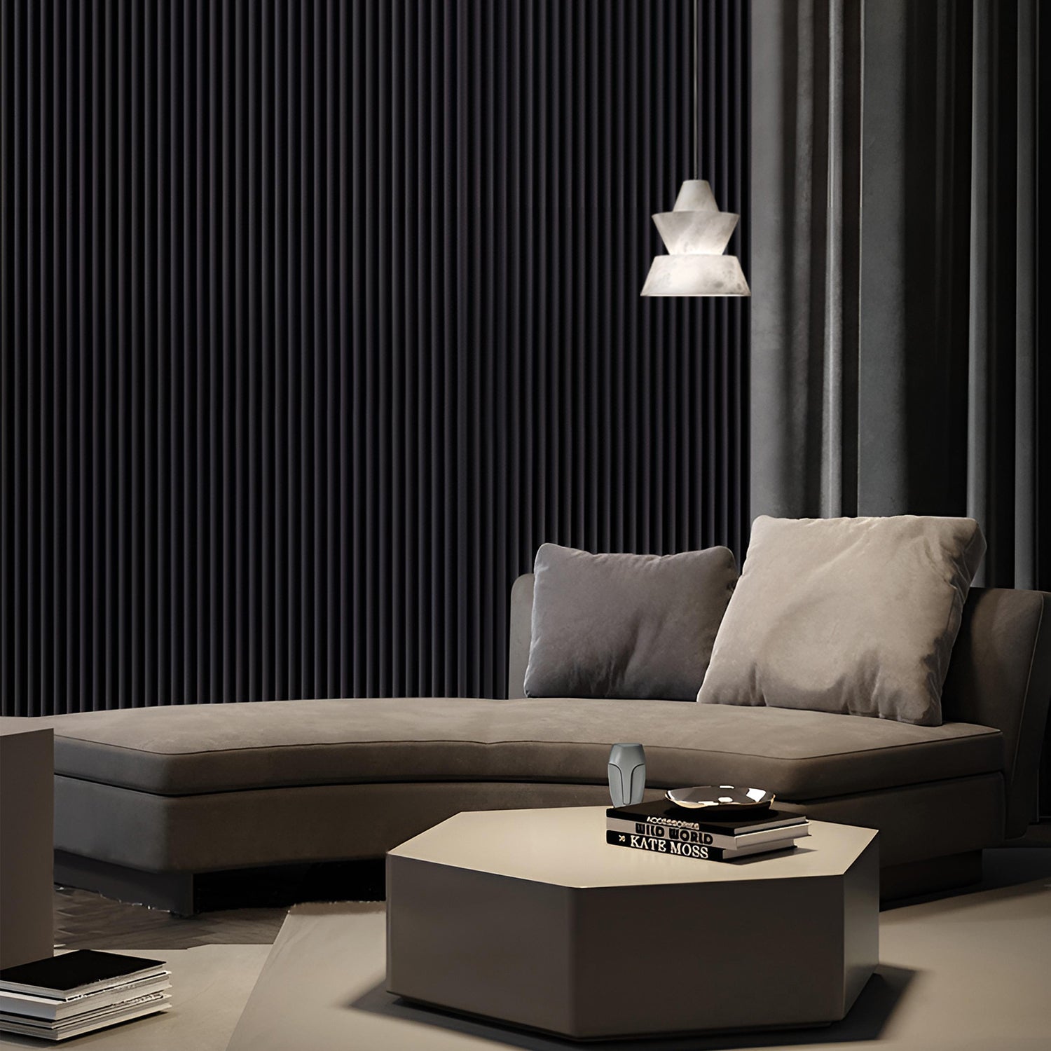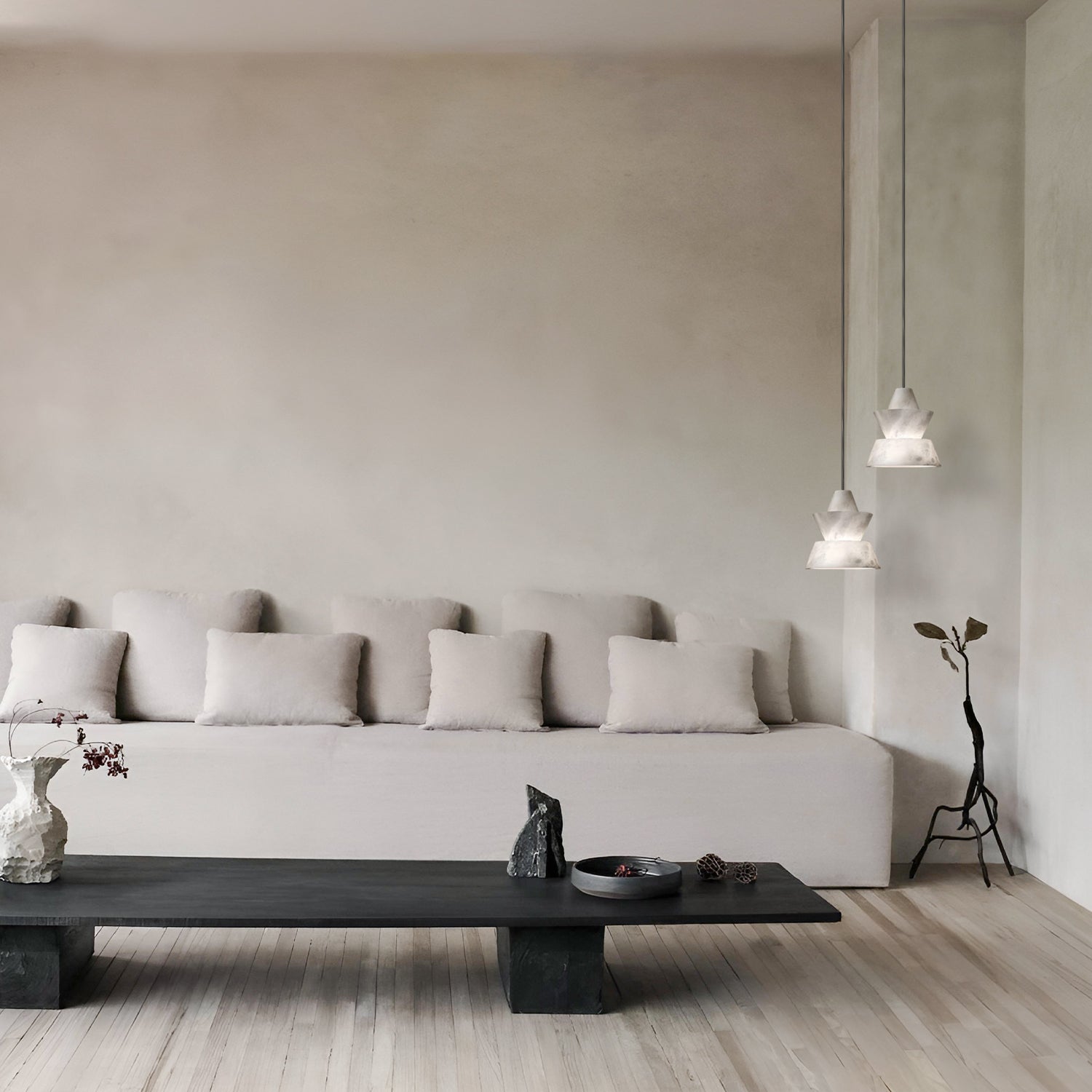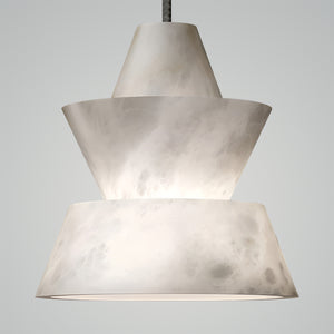 Presenting the LAB S18 Pendant Light that transforms any space into a display of layered beauty. Each tier is meticulously sculpted from translucent alabaster stone, known for its ability to diffuse light with a warm, enchanting glow. The pendant's design allows for a cascading effect of illumination, which ensures that it becomes the focal point of sophistication and style in your home or office. Ideal for creating a statement of natural elegance, this pendant light brings a piece of the earth's artistry into your daily life.