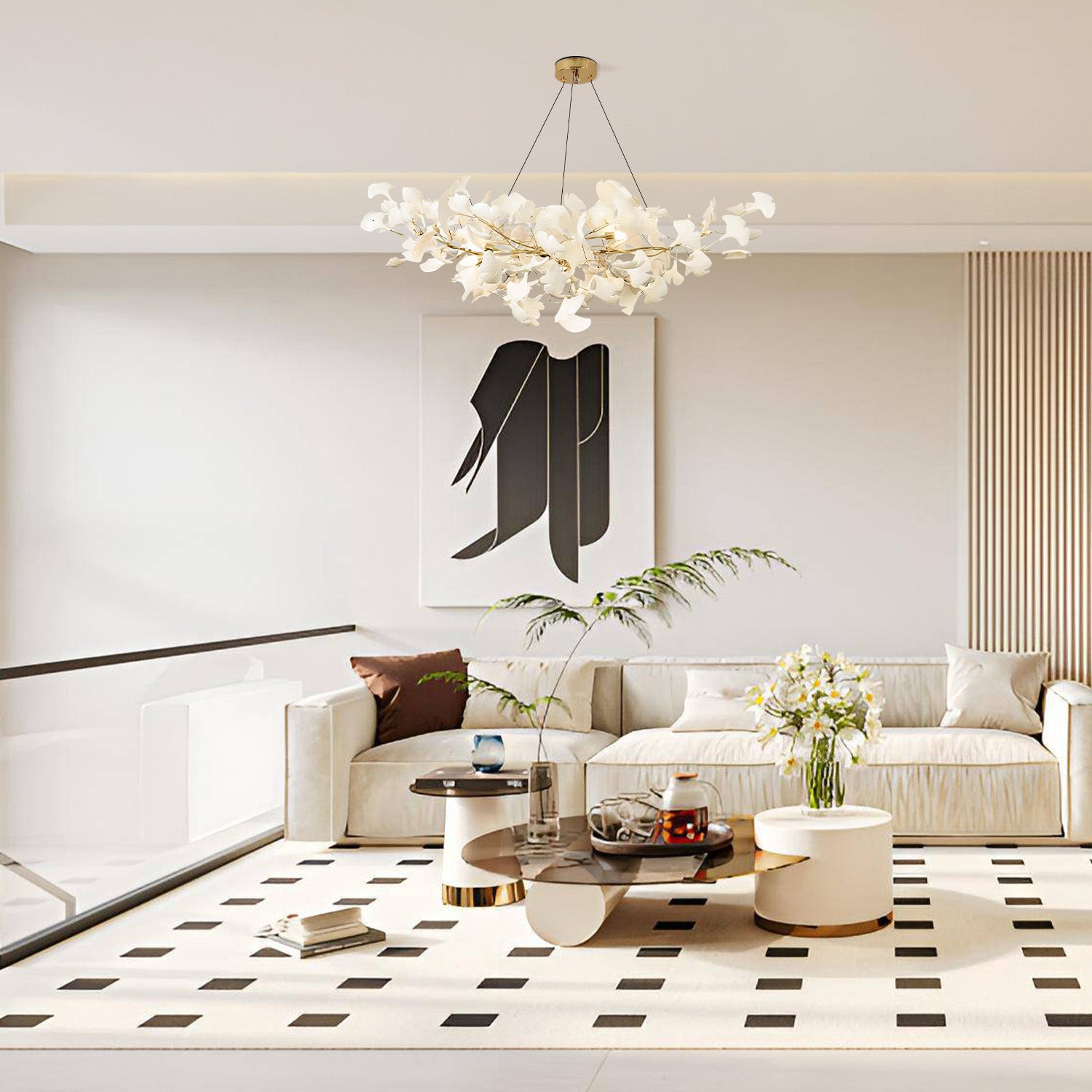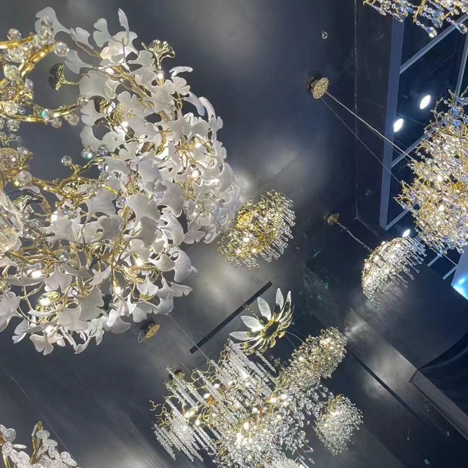 Light Sculpture GINGKO_1201 - Ethereal Ginkgo Canopy Chandelier