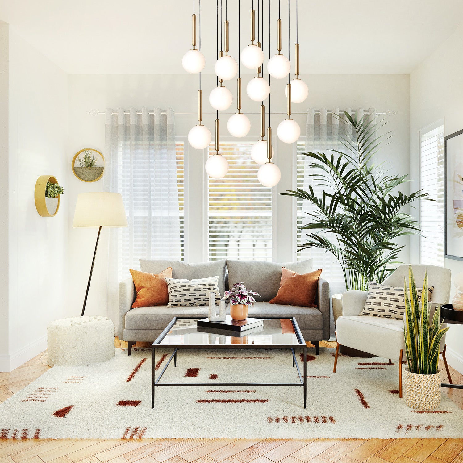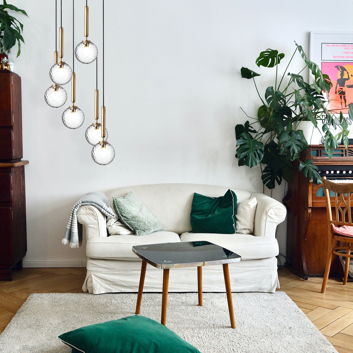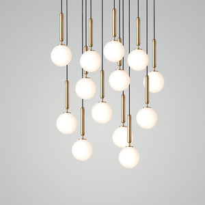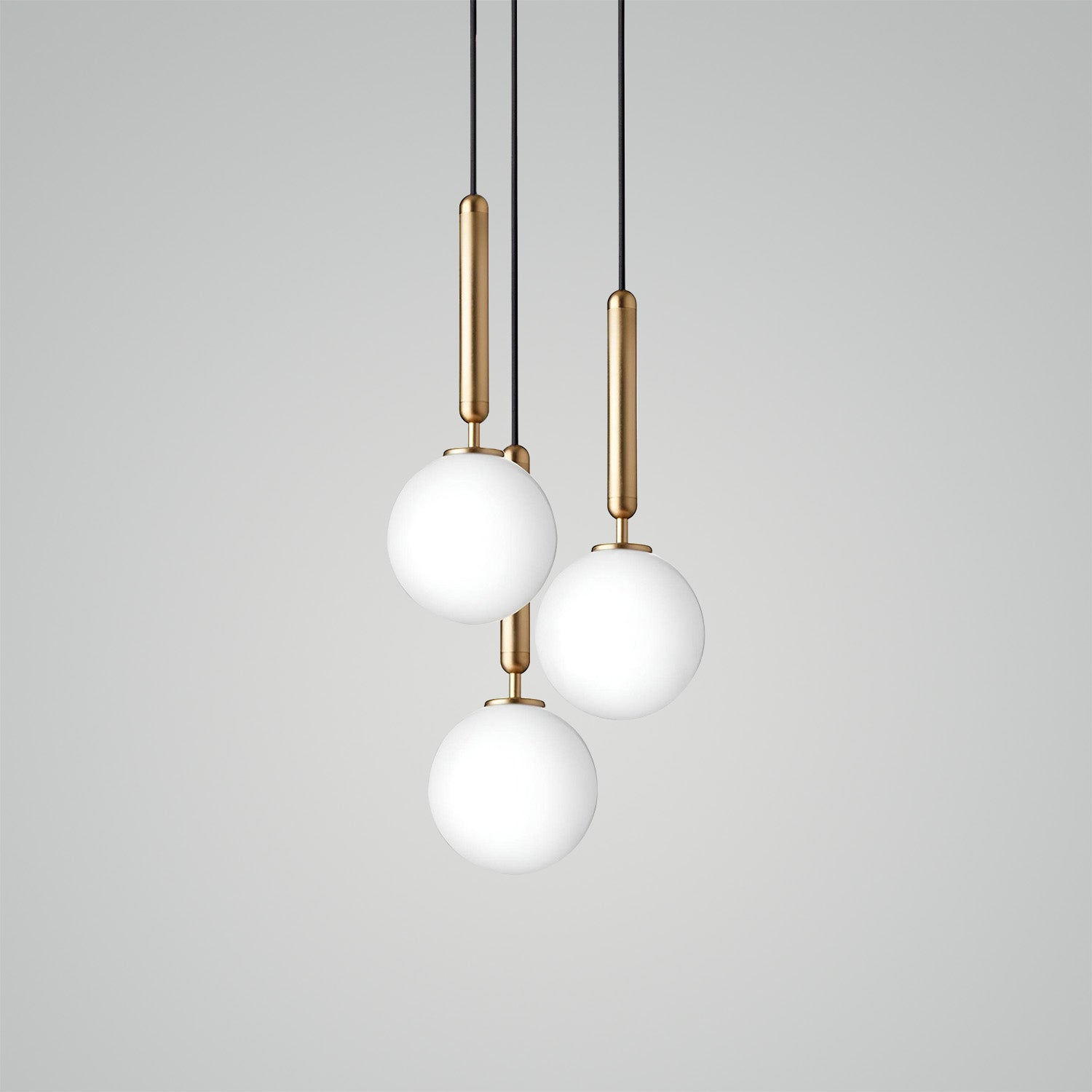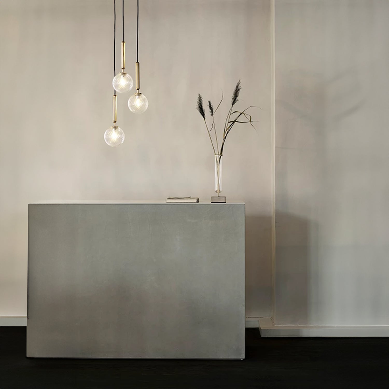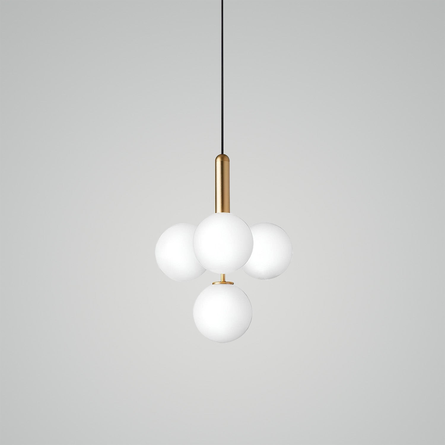 Introducing the "Miira Pendant Light," a celestial-inspired creation that brings the beauty of the night sky into your home. This pendant light features a constellation of textured glass spheres arranged in a harmonious cluster, each orb delicately diffusing light to create a soft, ambient glow. The elegant brass fittings add a touch of modern sophistication, ensuring this light fixture makes a bold statement in any setting. Ideal for illuminating a dining room with a warm, inviting atmosphere or adding a sculptural light source to a chic living area, the "Astral Orb Pendant" is a fusion of art and function. Illuminate your space with this stunning piece, designed for those who appreciate the allure of contemporary design with a whimsical twist.