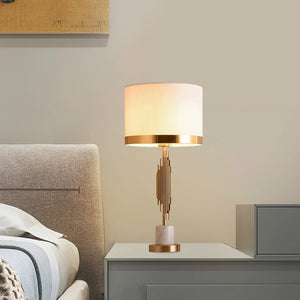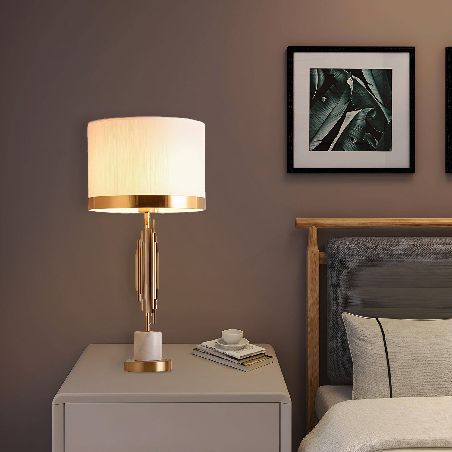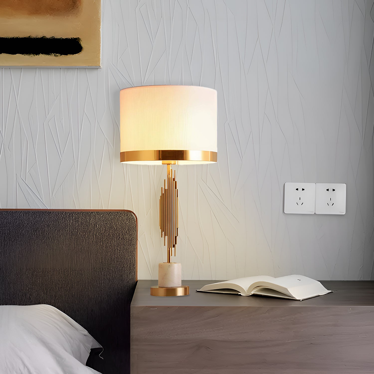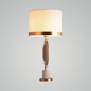 Unveil a touch of classic grandeur with the "Myrano Table Lamp", a perfect harmony of marble's timeless elegance and gold's rich warmth. This lamp is a sculptural masterpiece, with a central column that draws inspiration from the stately architecture of ancient Rome, updated for the modern connoisseur. The soft glow emanating from the ivory shade casts a serene ambiance, while the polished gold accents reflect a subtle, refined luxury. Ideal for sophisticated living rooms, stately offices, or as a graceful bedside companion, this lamp is not merely a source of light but a symbol of enduring beauty and luxury. Bring home the Aurelian Column Marble Table Lamp and let your space bask in its opulent light.
