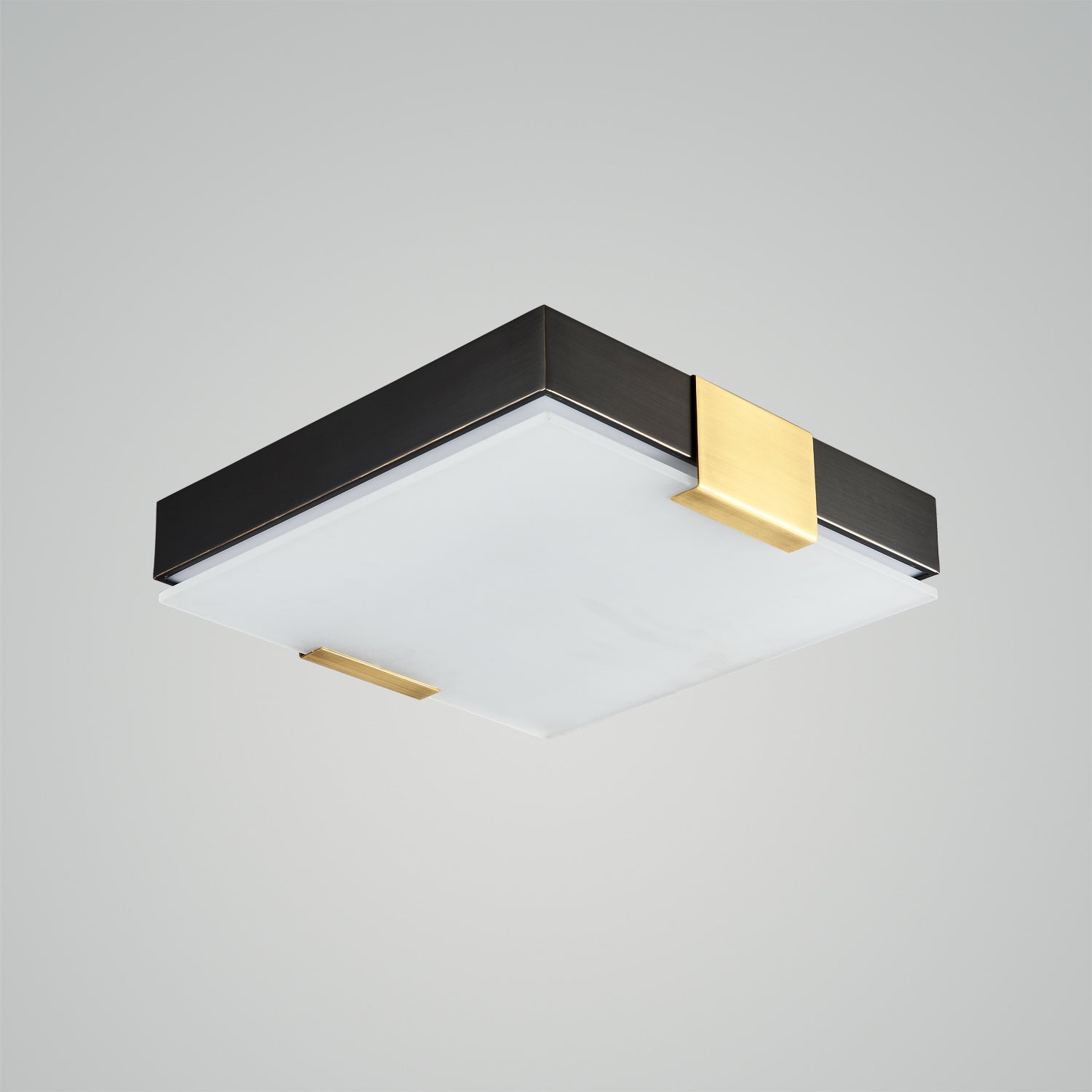 The square LED flushmount provides perfect, even lighting for your home. A smooth, square brass frame connects directly to the ceiling, extending slightly downward to reveal an acrylic layer below. The integrated LED light evenly diffuses through the acrylic, emitting a bright and energy-efficient glow that creates a warm and comfortable ambient light, ideal for setting just the right atmosphere.