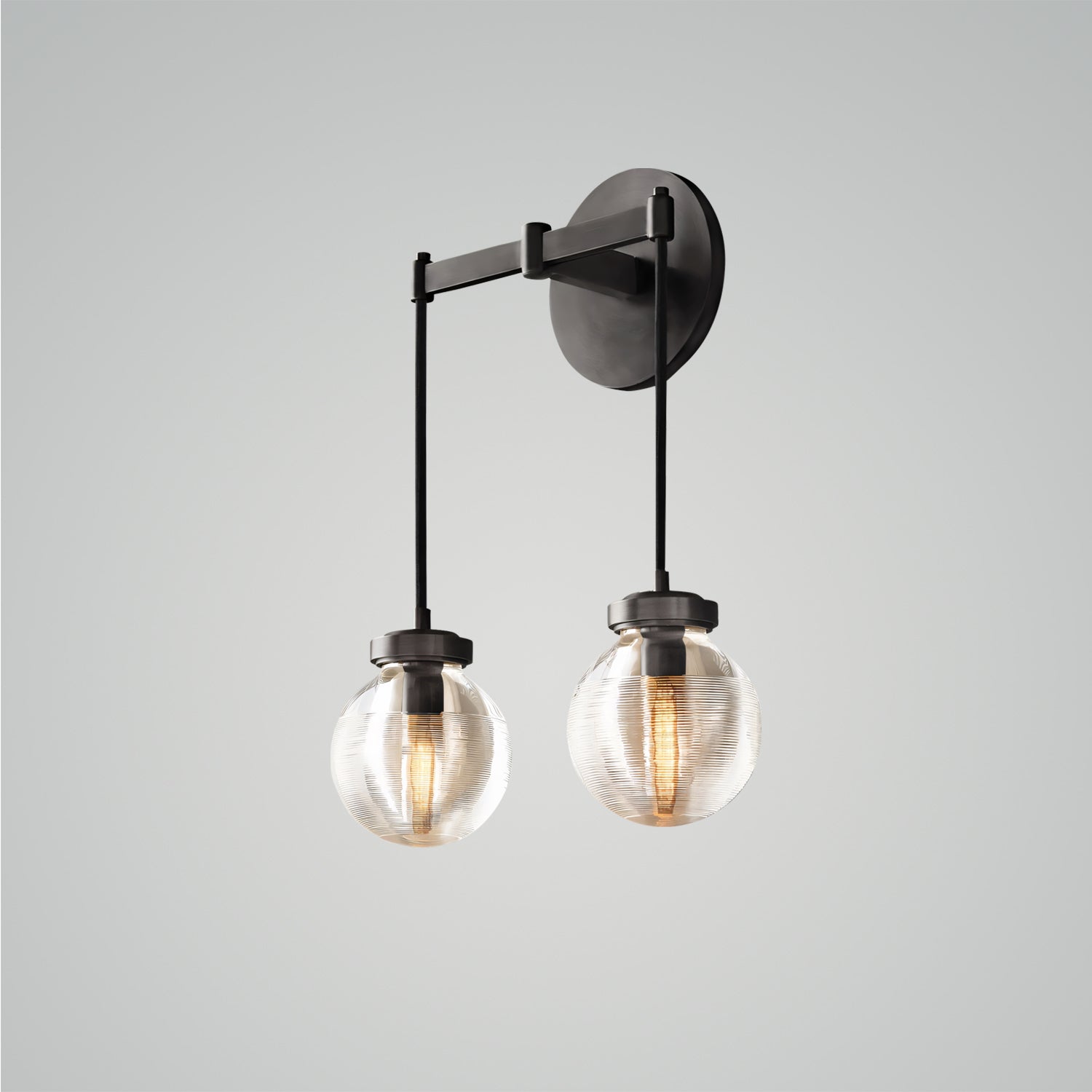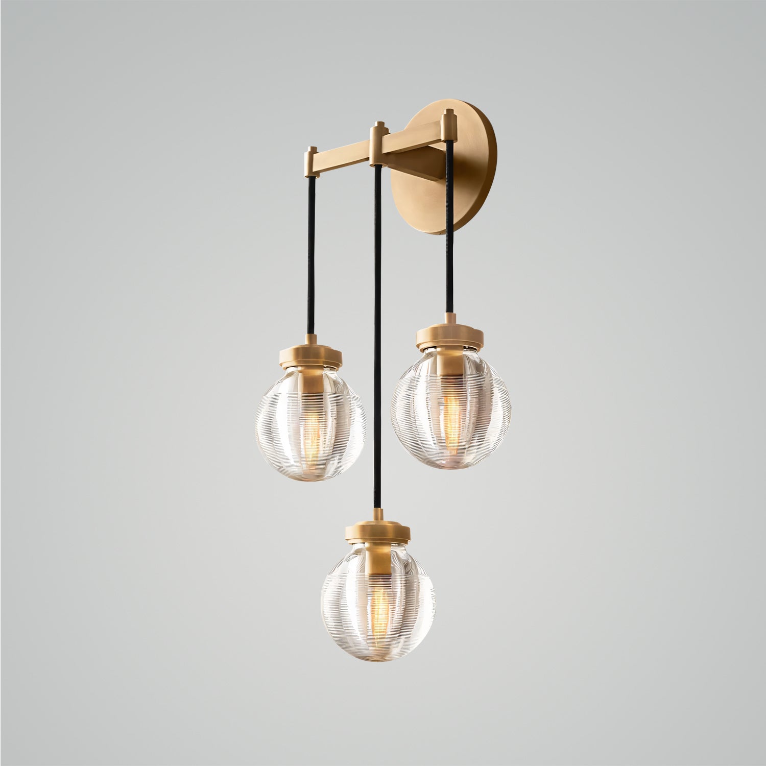 Glass pearls are carved with intricate grooves that create shimmering layers of light, bringing radiant, oceanic beauty to the collection. Influenced by the inciso technique developed by Venetian glassmakers, the texture both filters the illumination and invites contemplation, giving the pieces an ethereal yet intimate feel.