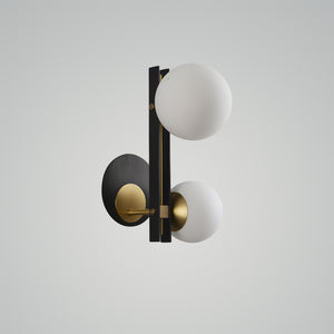 The modern ceiling lamp family draws inspiration from 1960s design. The glass lampshades orbit the burnished steel frame like a miniature planetary system. Featuring carefully selected brushed brass accents and the high-quality craftsmanship of white blown glass, this modern lamp adds a refined allure to any room. The collection includes a designer floor lamp, ceiling lamp, wall light, and modern table lamp.