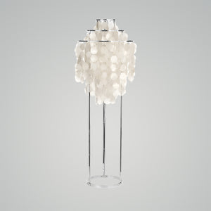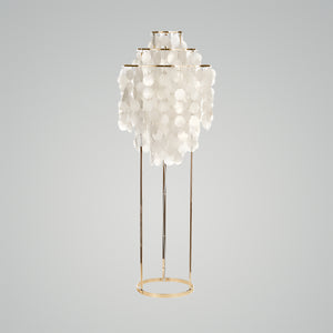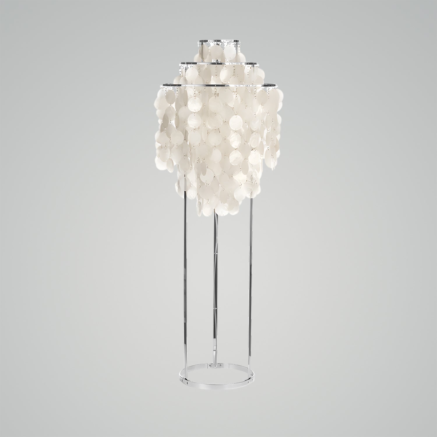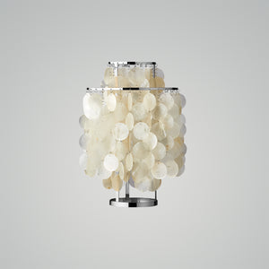 Many regard this collection as one of the greatest masterpieces in the field of lighting design. Since 1964, this table lamp has brought endless joy and stories. The small table lamp features a two-ring chrome frame.