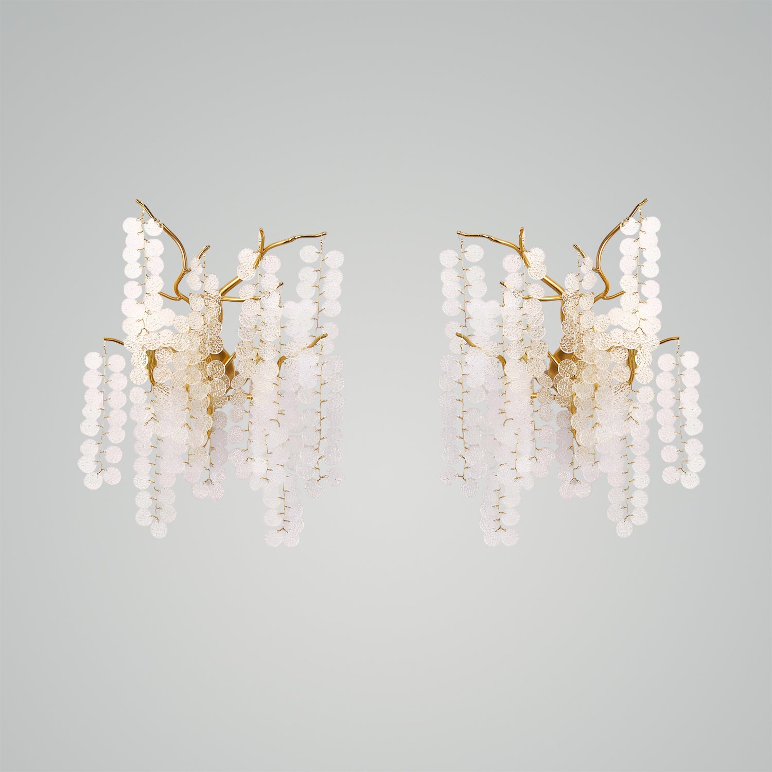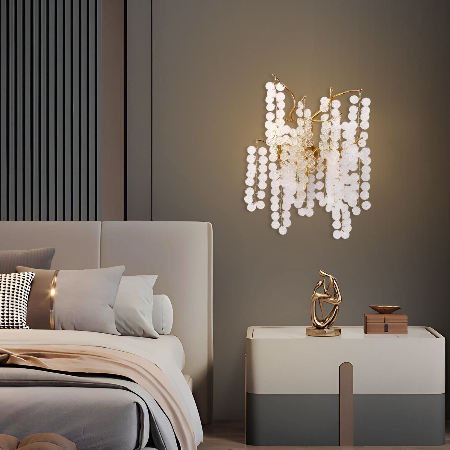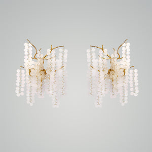 Transform any room into a sparkling sanctuary with the Shiro Noda Wall Lamp. This exquisite light fixture mimics the delicate form of morning dewdrops glistening in the sun. Each crystal is meticulously placed to create a cascading effect, reflecting light to produce a radiant and luxurious glow. With its elegant design and shimmering presence, this sconce is ideal for those who wish to add a touch of natural sophistication to their decor. Whether gracing a hallway or accenting a living room, the Crystal Dewdrop Wall Light is sure to enchant.