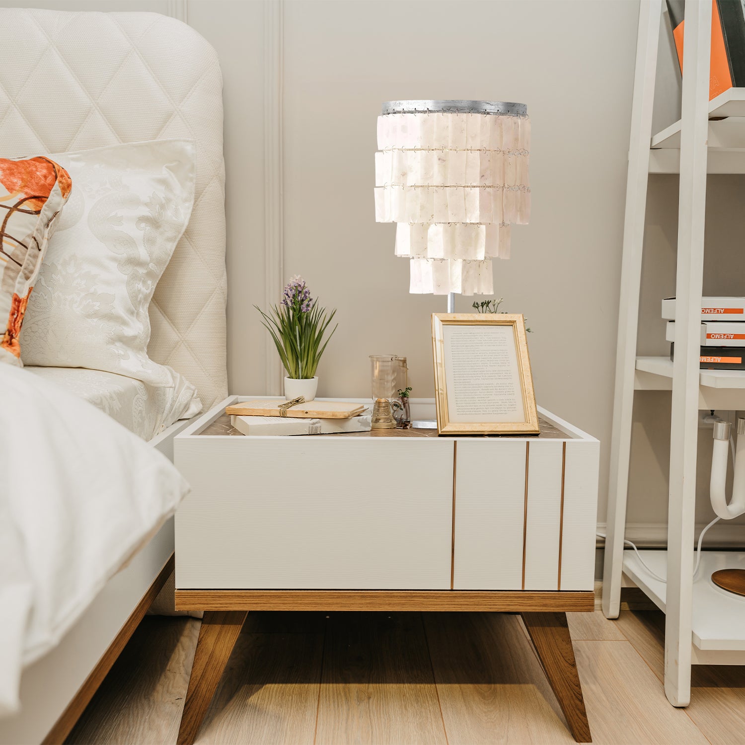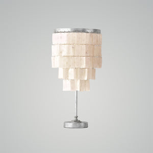 Add a touch of the ocean's tranquility to your home with the 'Skye Tiered Table Light'. This lamp features elegant tiers of natural seashell pieces, each one carefully selected for its gentle color and texture. The soft light cascades through the shells, providing a warm and ambient glow that's perfect for creating a peaceful atmosphere. With its timeless design and soothing illumination, this table lamp is an ideal addition to any room that desires a serene, coastal charm.