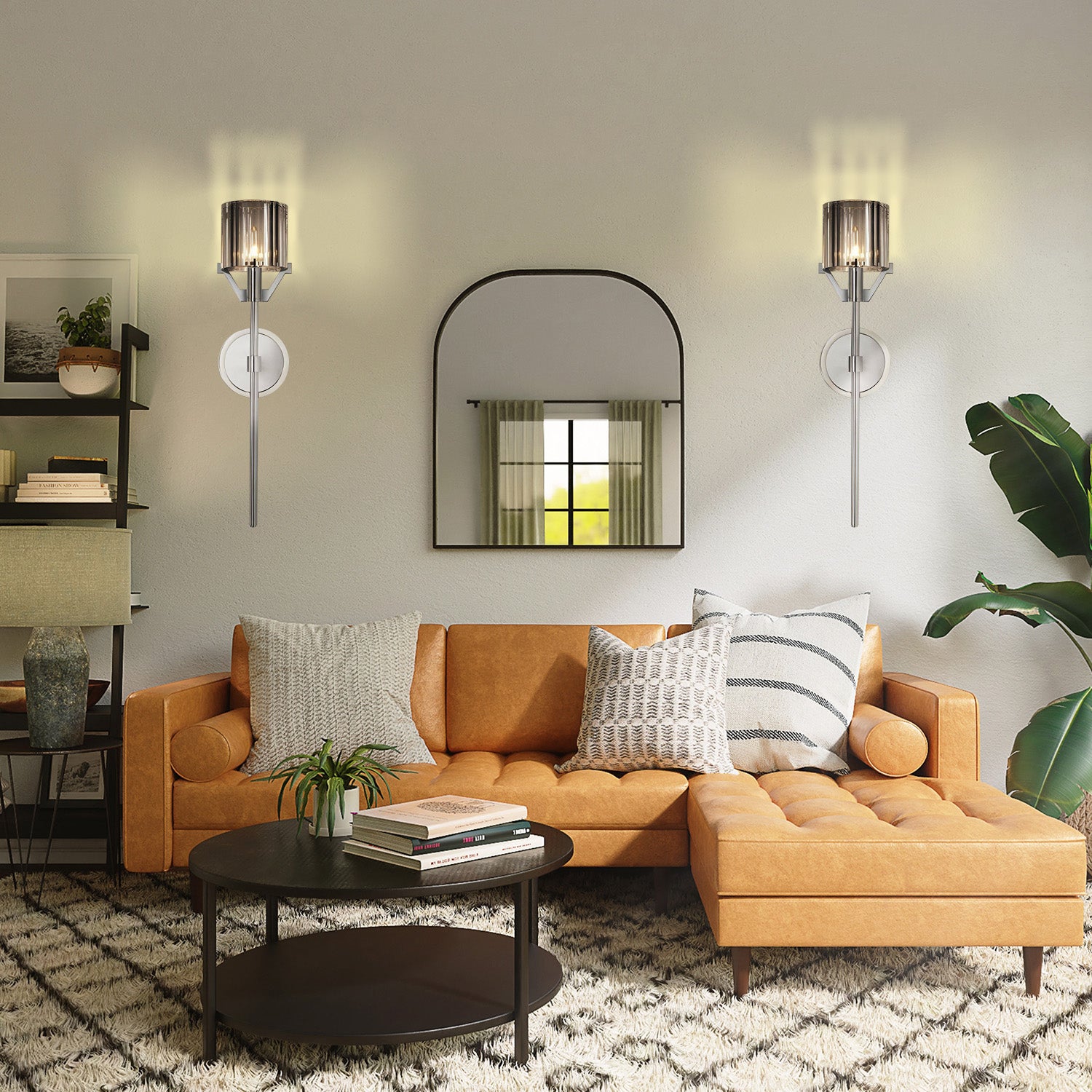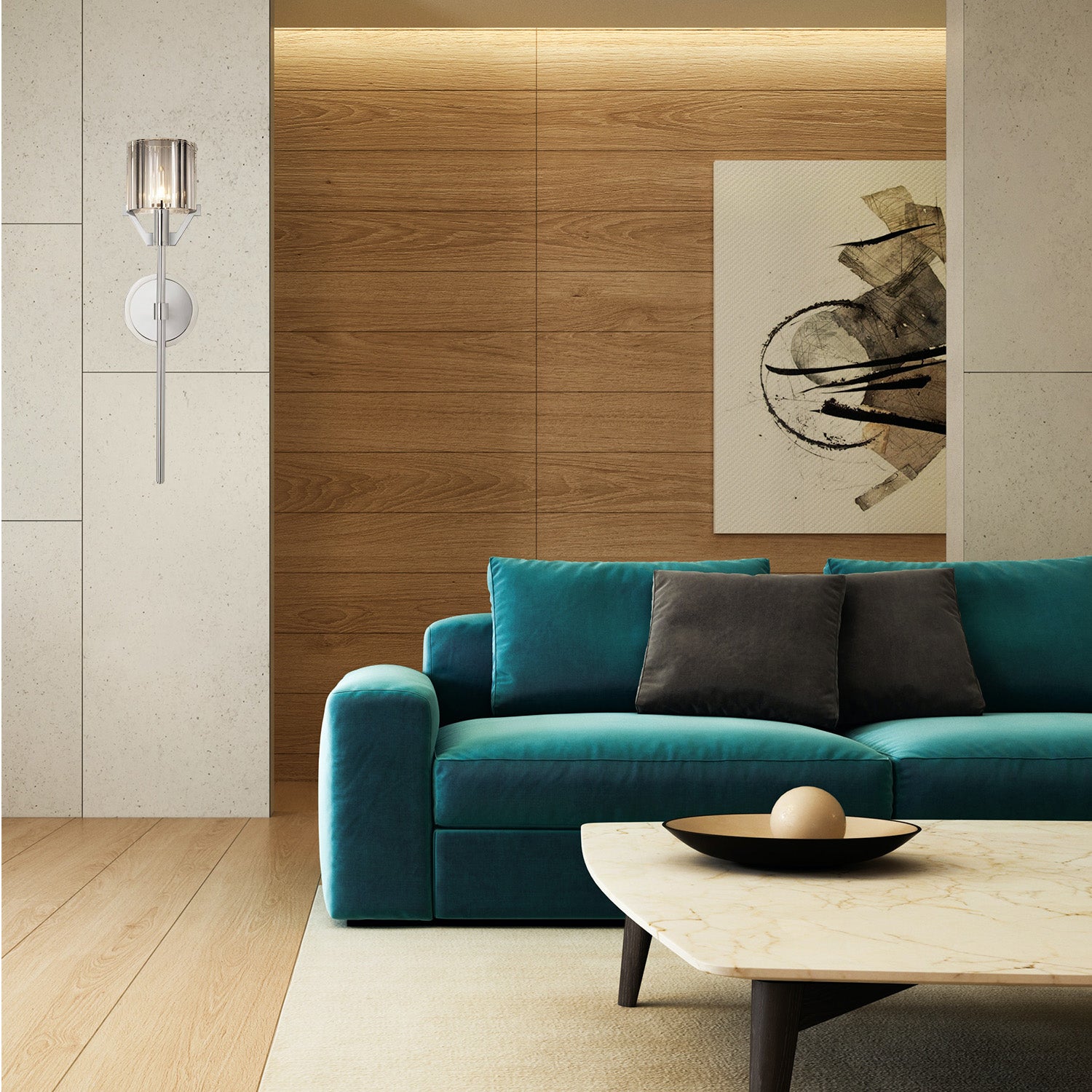 This lighting fixture boasts a pristine transparent shade that captures and refracts light to create a warm and inviting atmosphere in any space. Its sleek brass structure adds a touch of modern minimalist sophistication to your walls. Whether creating a focal point in a hallway or making a subtle statement beside your favorite artwork, the "Valdampierre Sconce" is a versatile piece that marries luxury design with functionality. Its soft illumination is perfect for setting the mood in intimate settings or welcoming guests with a gentle glow. Elevate your decor with this brilliant and timeless piece, a harmonious blend of classic elegance and contemporary style.