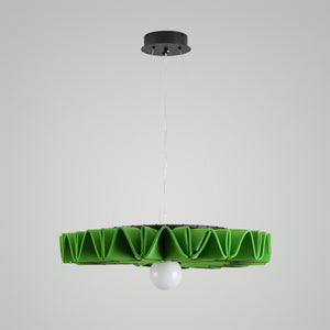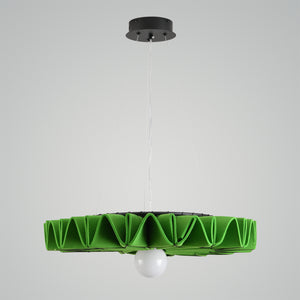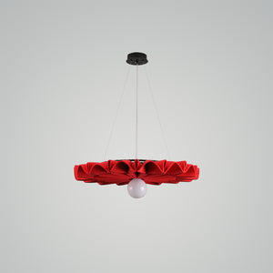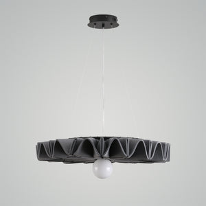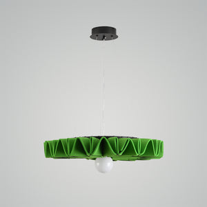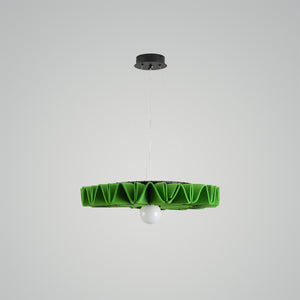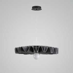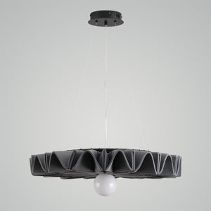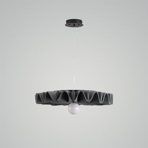 The architectural folds of the light maximize surface area, ensuring superior acoustic performance. Its large folds capture mid and low tones, preventing sound waves from reflecting between hard surfaces. By combining multiple lights at varying suspension heights, you can effectively reduce sound in spaces with high ceilings.