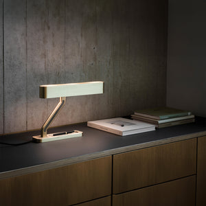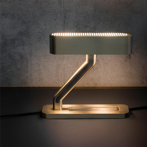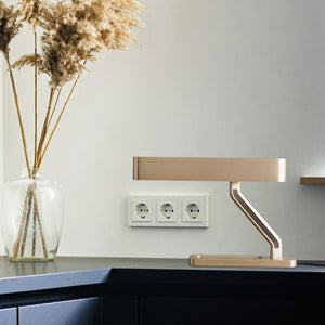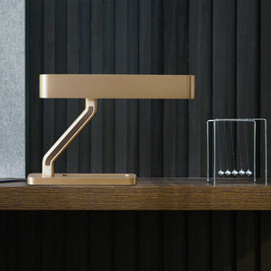 Illuminate your workspace with the Colt Table Lamp, a paragon of modern design and functionality. With its sleek, geometric lines and a rich golden hue, this lamp is more than just a light source — it's a statement piece. The streamlined form provides not only an elegant touch to your desk but also ensures an even, soft light for any task at hand. Perfect for the discerning individual with an eye for style and a need for practicality,the Luxurious Sculptural Colt Table Lamp is a beacon of contemporary sophistication.