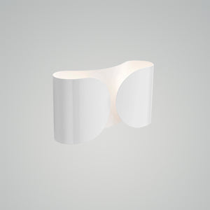 The wall lamp provides direct/indirect/partially diffused light. The wall fitting is made of powder-coated polished white pressed steel.