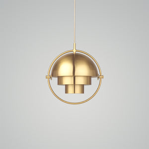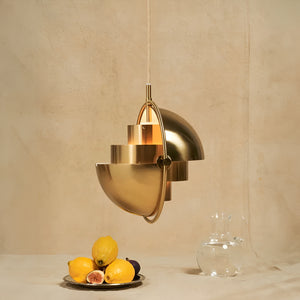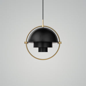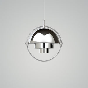 The pendant lamp embodies the golden era of Danish design, featuring an iconic shape with two opposing movable outer shades that allow for personalized installations and offer a variety of lighting effects in a room. By individually rotating the shades, the pendant lamp can be transformed into multiple combinations, directing light upwards, downwards, or emitting an asymmetrical artistic glow. The design was first sketched in 1972 when the designer broke away from the usual practice of using repetitive elements, instead reflecting a passion for diversity. Two cylindrical shapes form the foundation of the lamp, while a metal ring encircles and anchors the two quarter-spherical shades, completing this iconic design with versatile functionality. The pendant lamp has a timeless expression that fits into any home setting.
