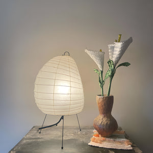 Introducing the Akari 1N Table Lamp, a perfect blend of elegance and modern design. This uniquely shaped lamp features a gently rounded paper shade that casts a warm, inviting glow, creating a cozy atmosphere in any room. Its minimalist design and sleek metal frame make it an ideal addition to both contemporary and classic decor. Whether placed on a bedside table, desk, or in a living room, the Akari 1N Table Lamp not only illuminates your space but also enhances it with a touch of sophistication. Light up your home with the gentle radiance of this exquisite lamp.