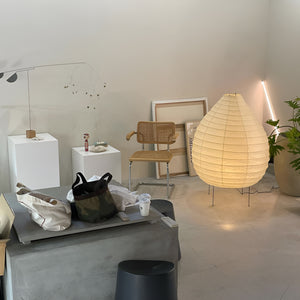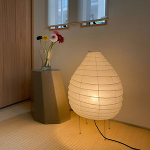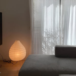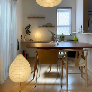 Discover tranquility and elegance with the Akari 22N Table Lamp. This beautifully crafted table lamp features a teardrop-shaped white paper shade, which diffuses light softly to create a warm, inviting ambiance. Supported by minimalist black legs, its design blends effortlessly into any decor style, making it a versatile addition to your home. Perfect for a bedside table, living room, or workspace, the Akari 22N Table Lamp provides a peaceful and stylish lighting solution. Enhance your space with the gentle illumination and modern charm of the Akari 22N Table Lamp.