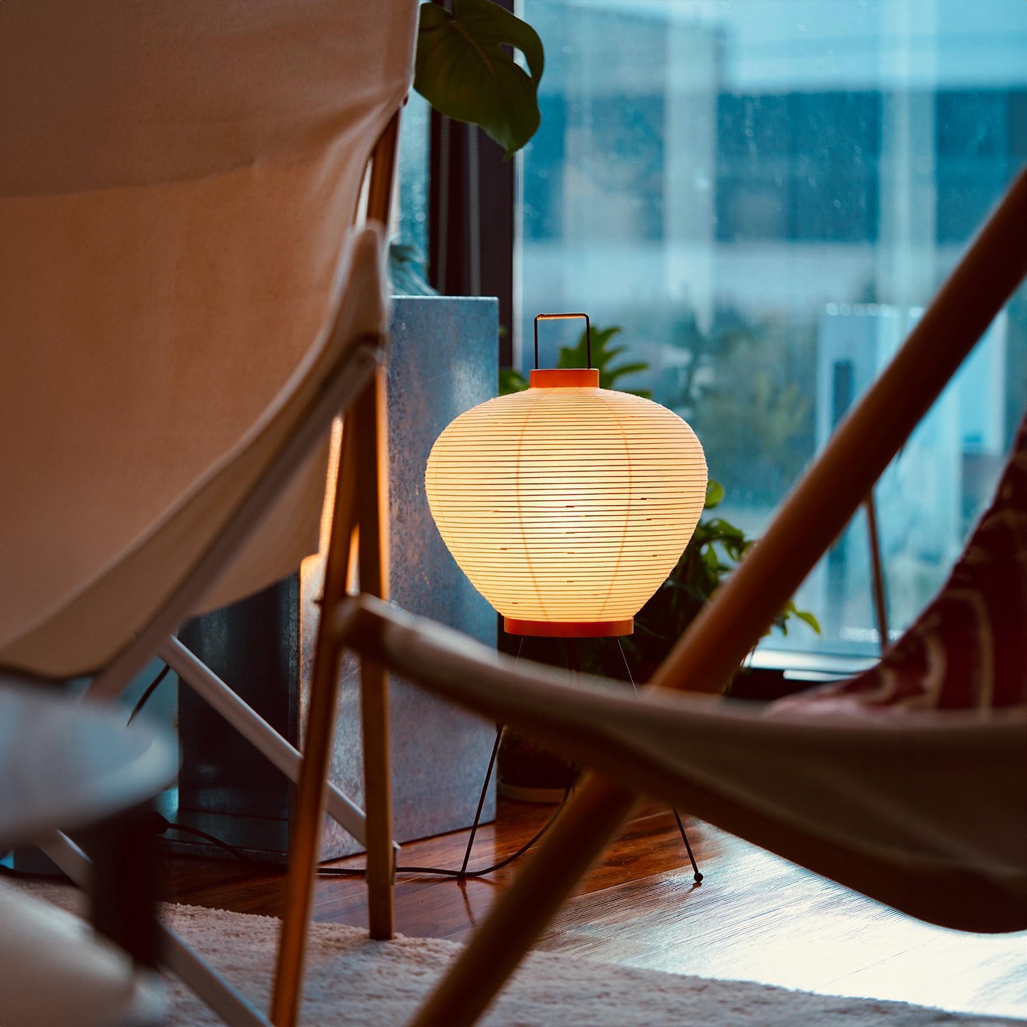 The "Akari Series" is regarded as a classic of modern design, handcrafted by Japanese washi artisans. These paper lanterns skillfully blend traditional Japanese craftsmanship with modernist aesthetics, utilizing handmade washi and bamboo ribbing, complemented by a metal frame to showcase a simple and elegant design.