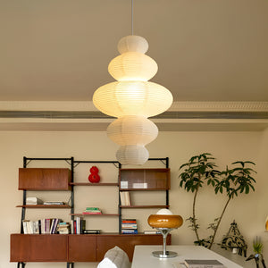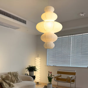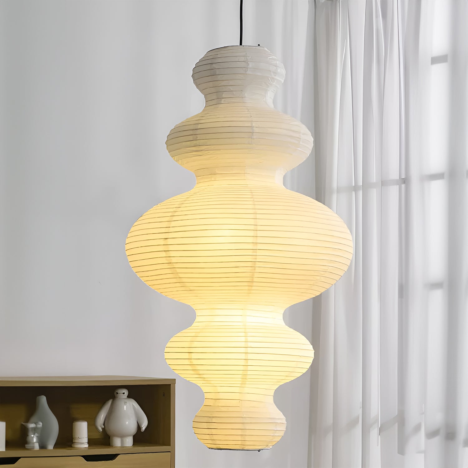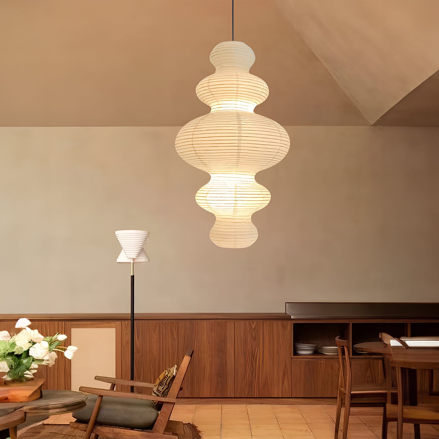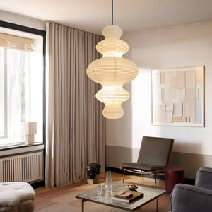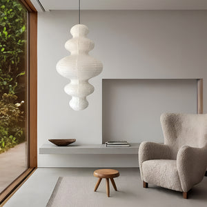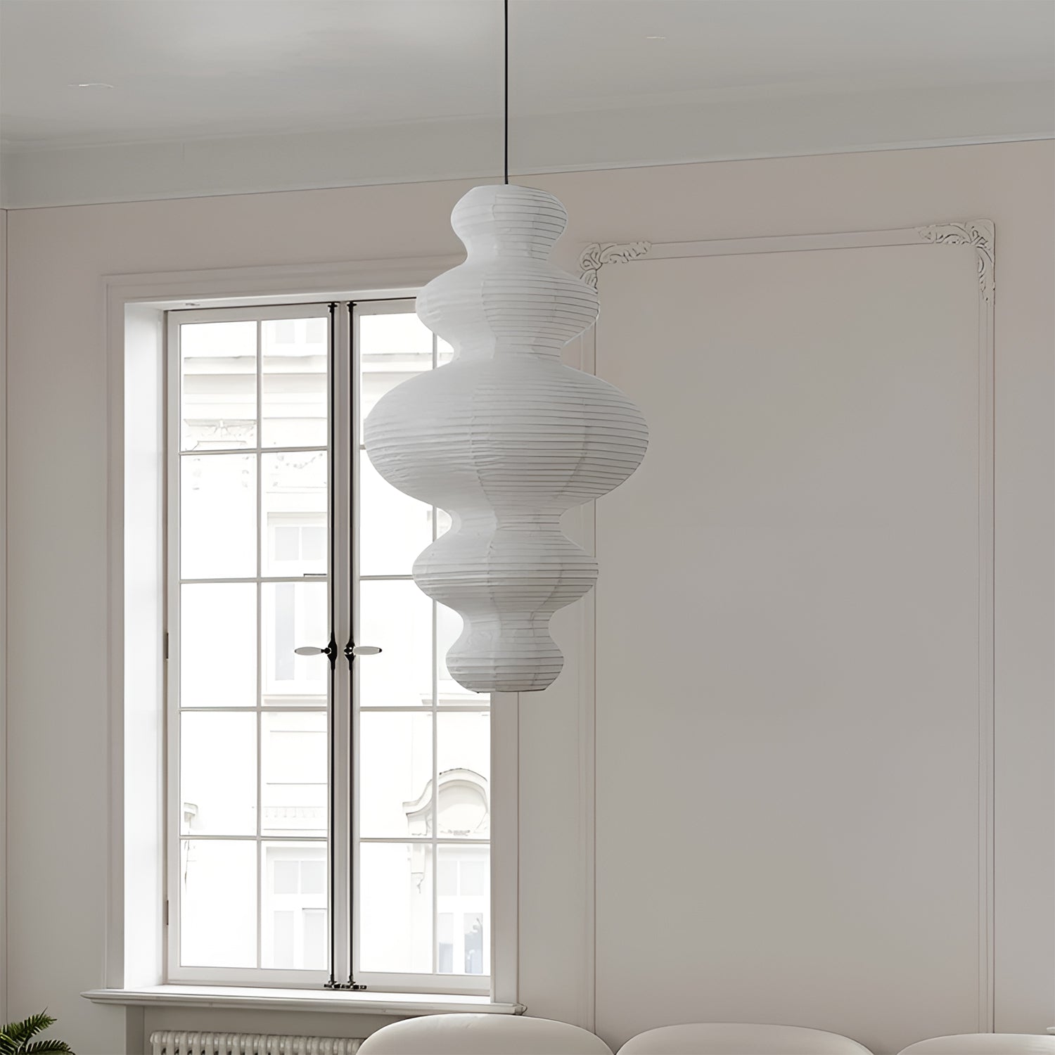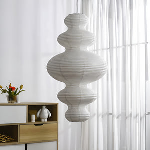 Transform your space with the elegant and serene design of the Akari Juni Pendant Lamp. This beautifully crafted hanging lamp features a unique, undulating shape that mimics the gentle flow of waves. Its pristine white paper shade diffuses light softly, creating a tranquil and inviting atmosphere in any room. Ideal for modern and minimalist interiors, the Akari Juni Pendant Lamp adds a touch of sophistication and calm to your living room, dining area, or bedroom. Illuminate your home with this exquisite piece that combines both form and function seamlessly.