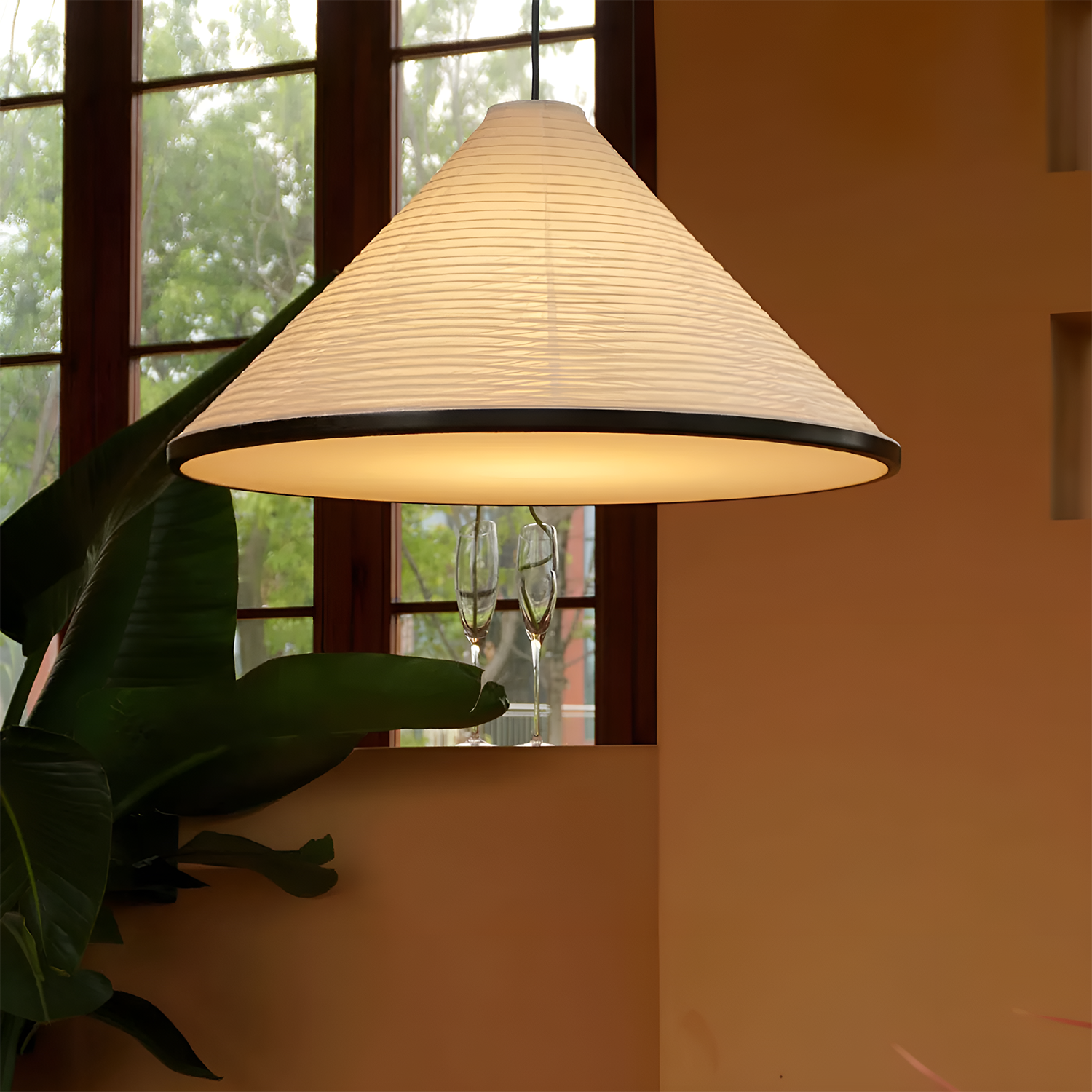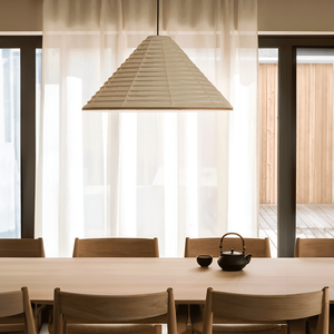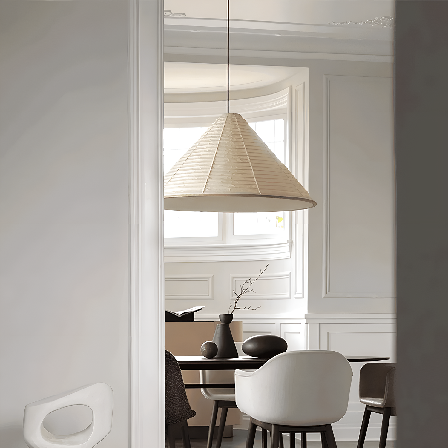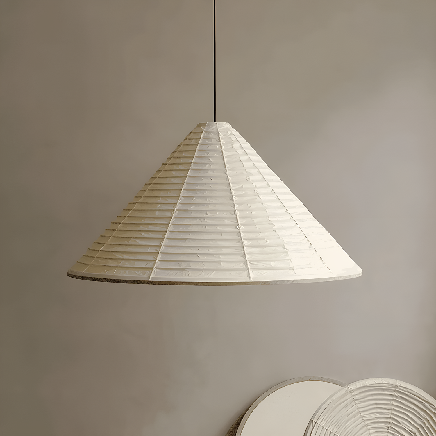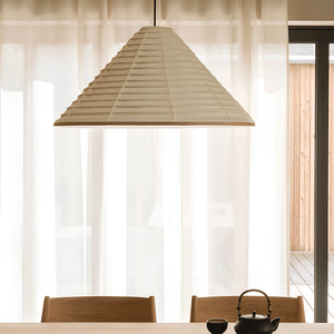 Step into a world of sleek minimalism with the Washi Paper Pyramid Pendant Swag Lamp, a pendant light designed to cast a refined glow over any contemporary space. Featuring a crisp, conical design with subtle textural elements, this fixture combines modern aesthetics with functional lighting. Its clean lines and neutral palette make it a versatile addition to kitchens, dining areas, or workspaces. Enhance your environment with the Washi Paper Pyramid Pendant Swag Lamp, where design meets the peak of illumination.