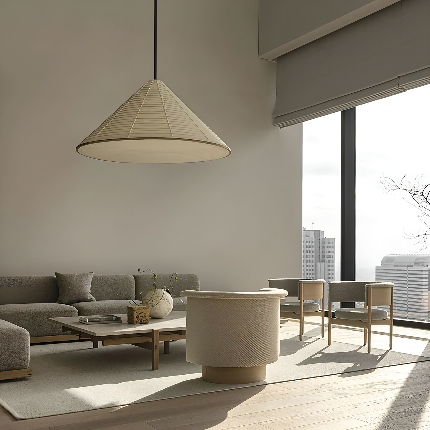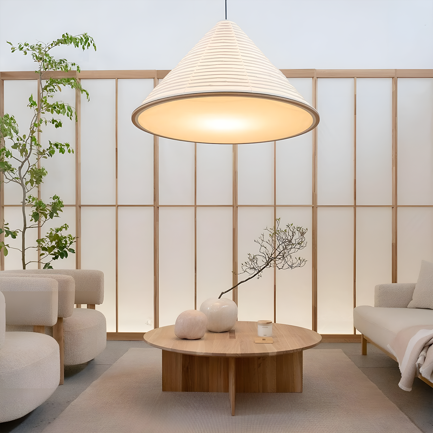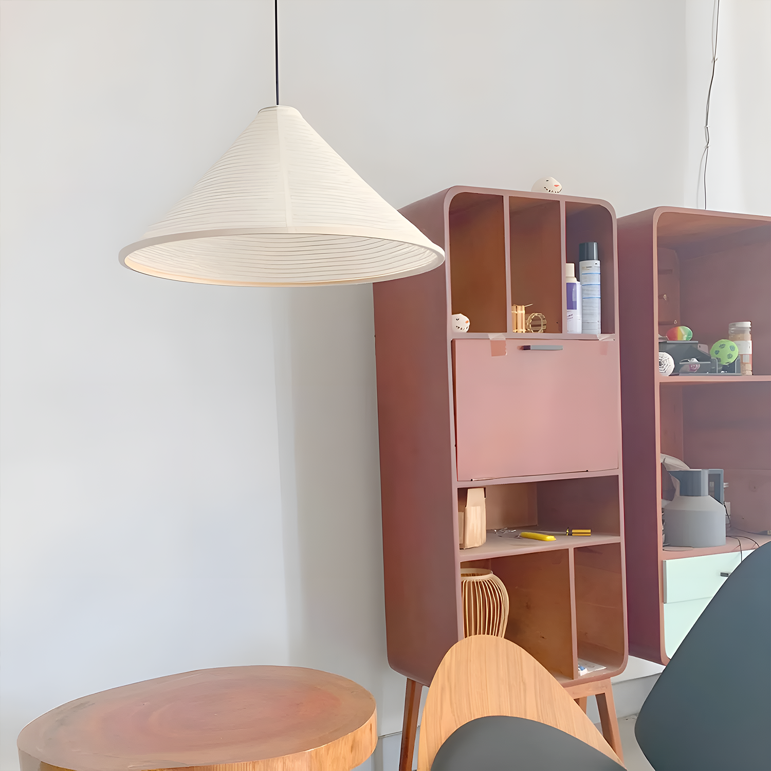 Step into a world of sleek minimalism with the Washi Paper Pyramid Pendant Swag Lamp, a pendant light designed to cast a refined glow over any contemporary space. Featuring a crisp, conical design with subtle textural elements, this fixture combines modern aesthetics with functional lighting. Its clean lines and neutral palette make it a versatile addition to kitchens, dining areas, or workspaces. Enhance your environment with the Washi Paper Pyramid Pendant Swag Lamp, where design meets the peak of illumination.