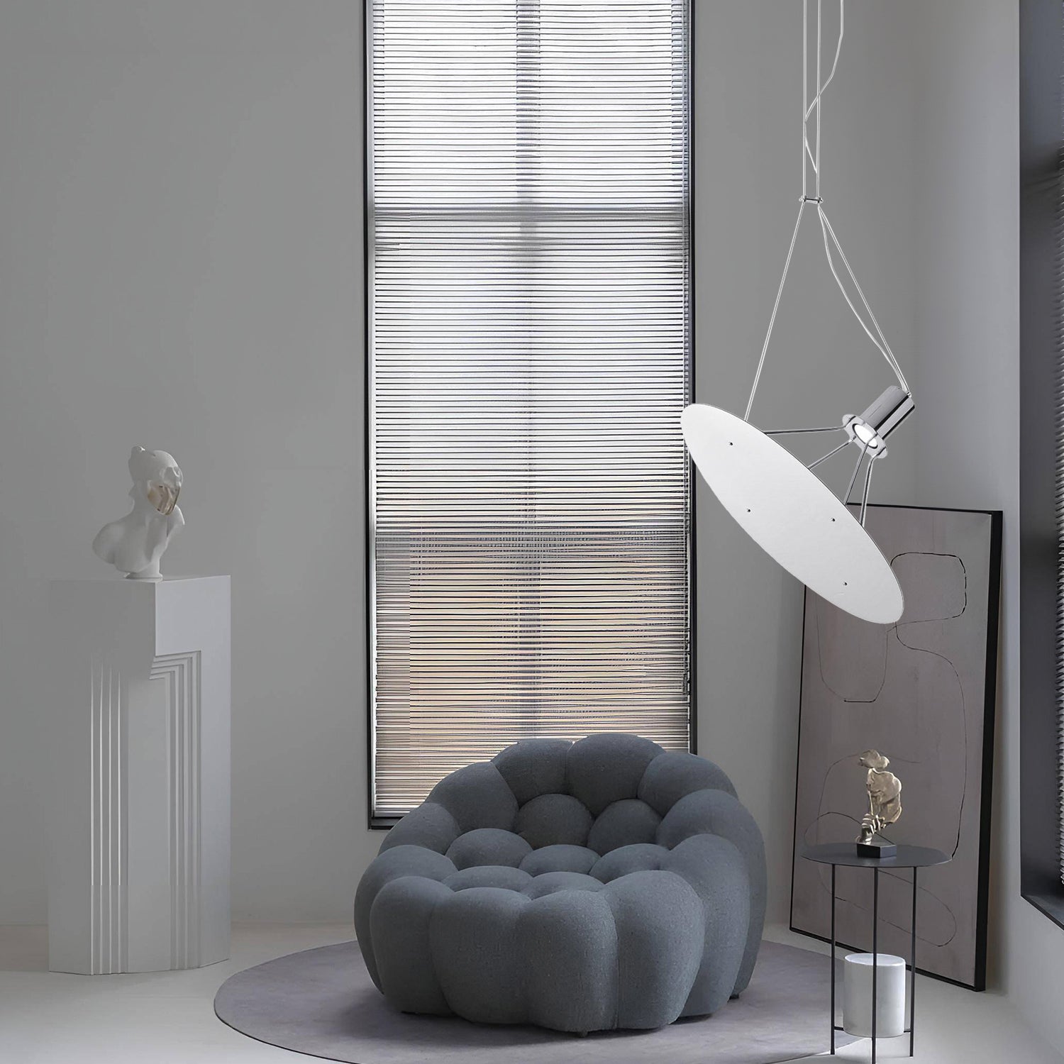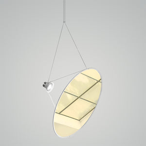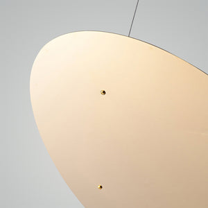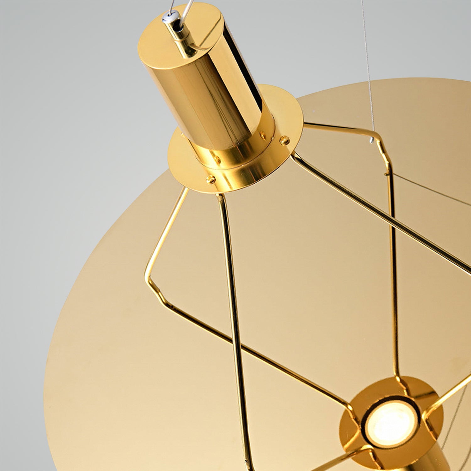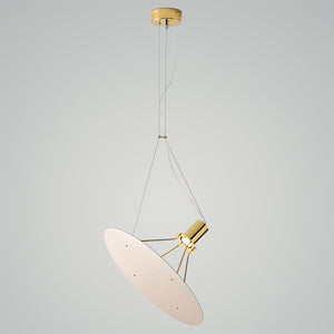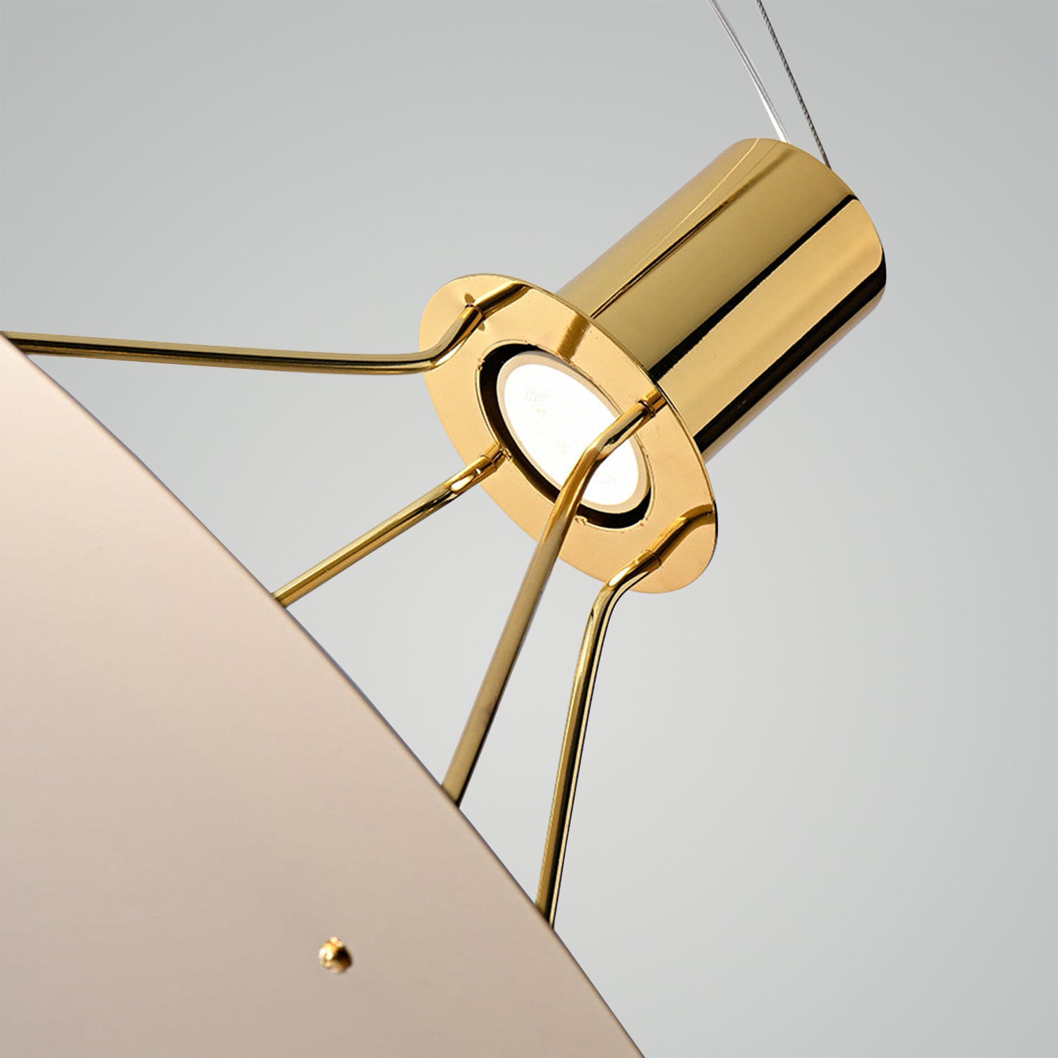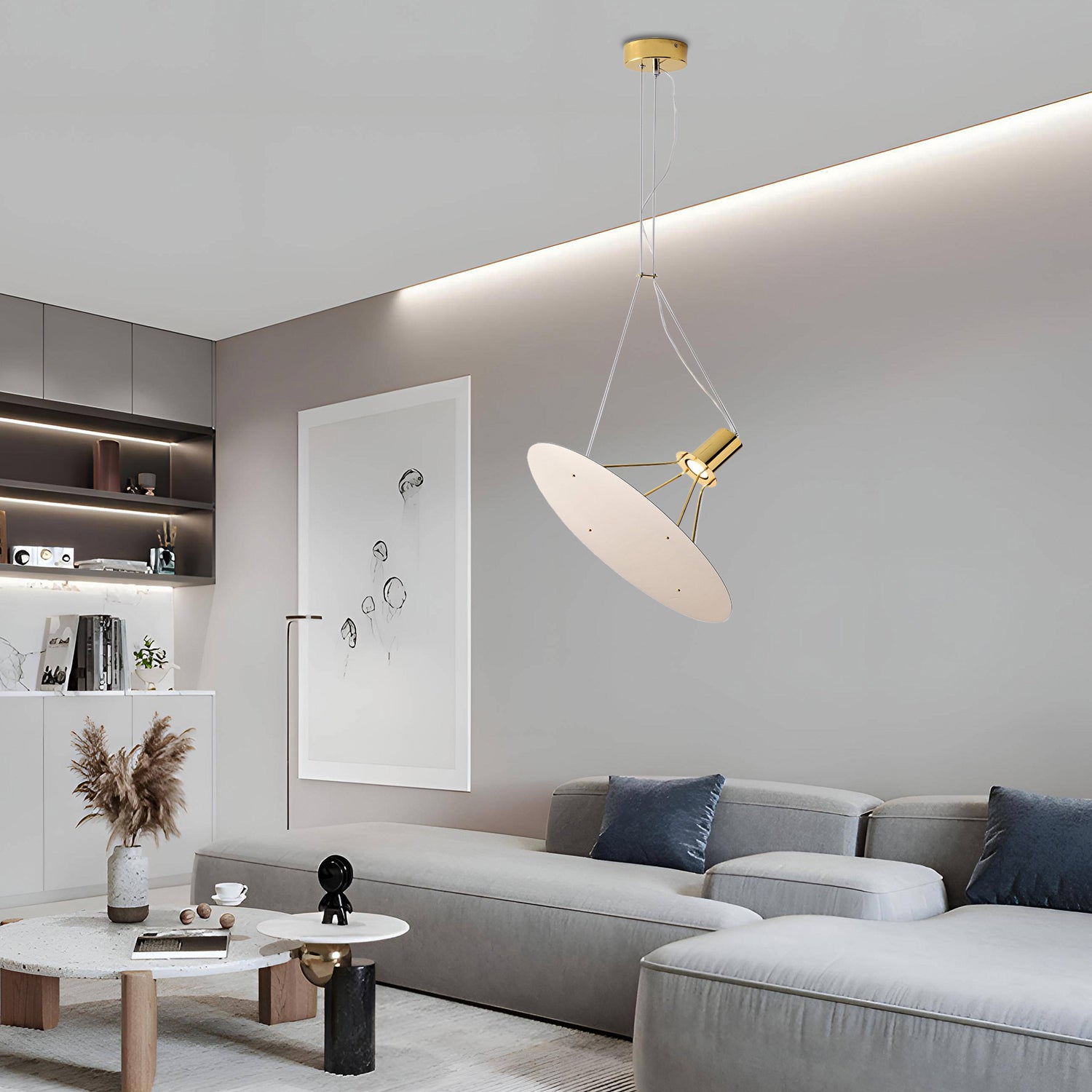 Elevate your space with the 'Amisol Pendant Lamp,' a testament to the essence of Italian minimalist design. This lamp features a sleek, circular disc that seems to float in the air, providing a soft, diffused light that perfectly balances form and function. The slender suspension cables and gold accents create a look of sophistication and airiness. Ideal for modern homes and offices, this piece is not just a source of light but a conversation starter, adding a sculptural element to any room it graces.