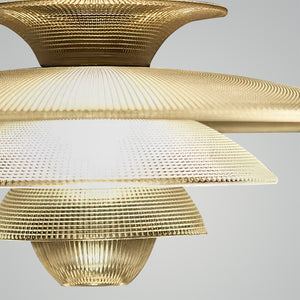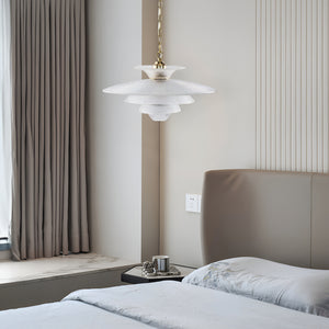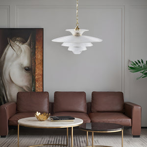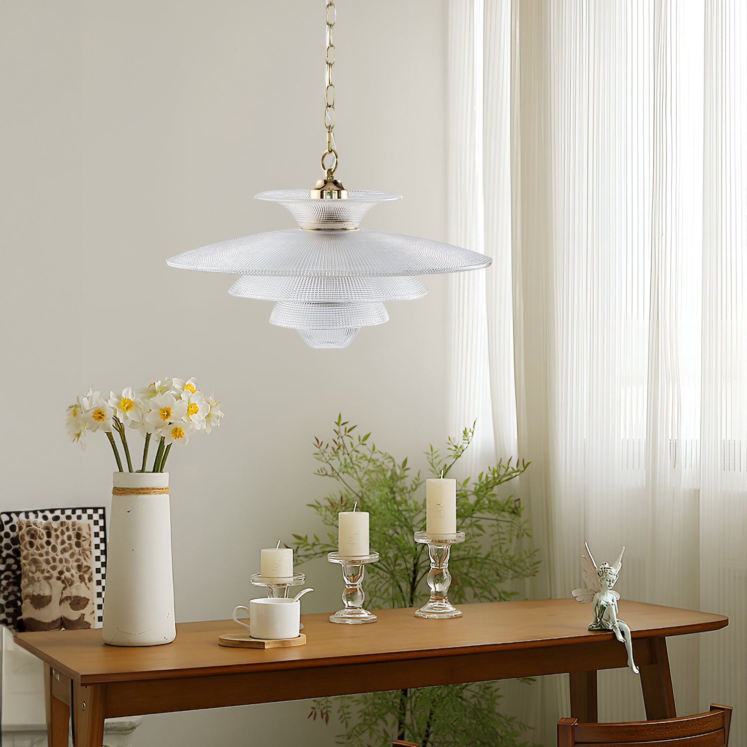 Introducing the Aurora Tier Pendant Light, an elegant lighting fixture that combines timeless design with modern sophistication. Featuring a stunning multi-tiered glass shade, this lamp radiates light through its meticulously crafted layers, creating a mesmerizing glow that transforms any space. The golden chain suspension adds a touch of luxury, making it a perfect centerpiece for dining rooms, living areas, or grand entryways. The Aurora Tier Pendant Lamp not only provides exceptional illumination but also serves as a statement piece, enhancing the aesthetic appeal of your interior decor. Elevate your home with the refined beauty of this exquisite pendant lamp.