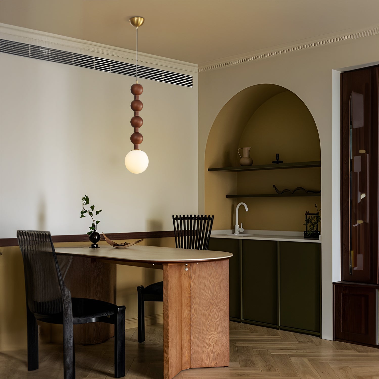 This wooden beaded pendant light features exquisite wood materials and a bead design, radiating a natural and warm ambiance. It complements various interior decor styles, provides soft lighting, and adds a unique charm to the space.