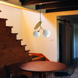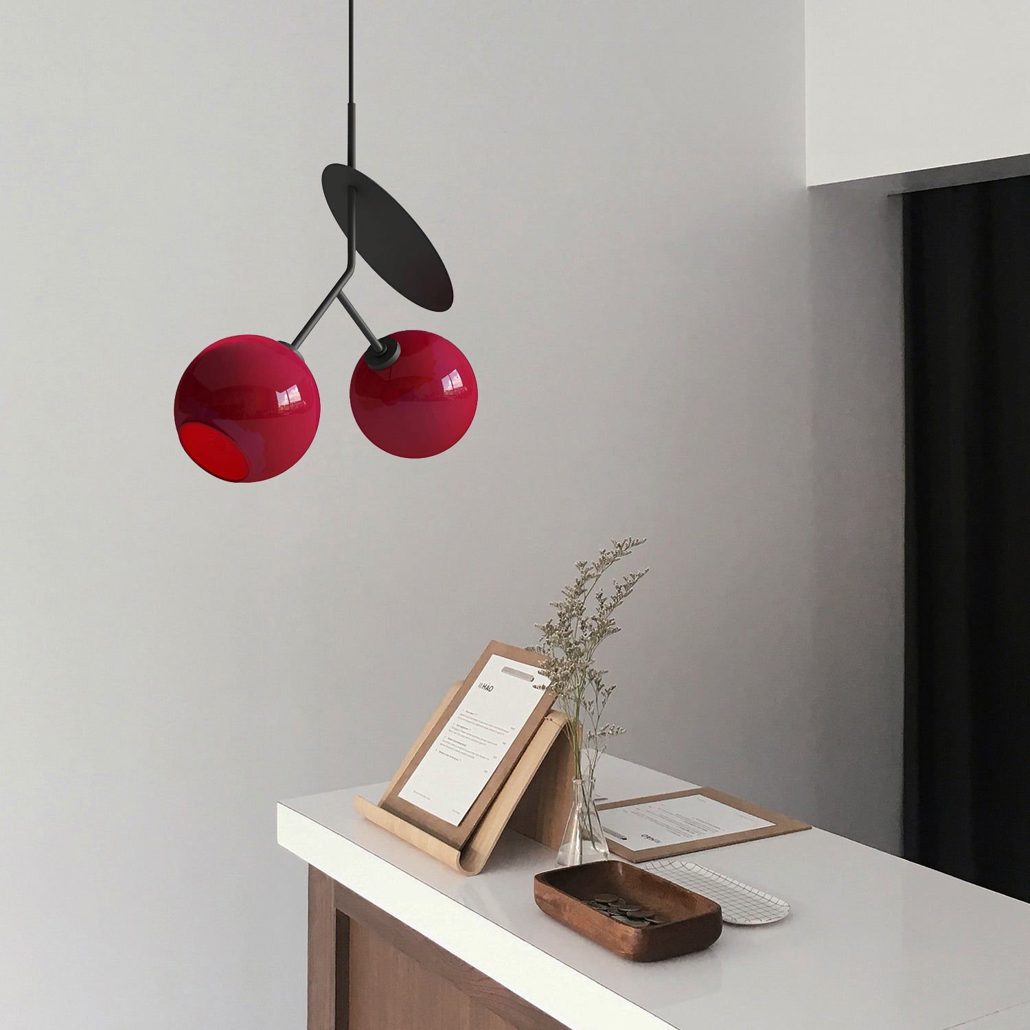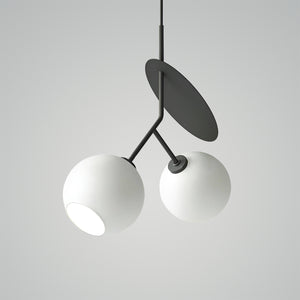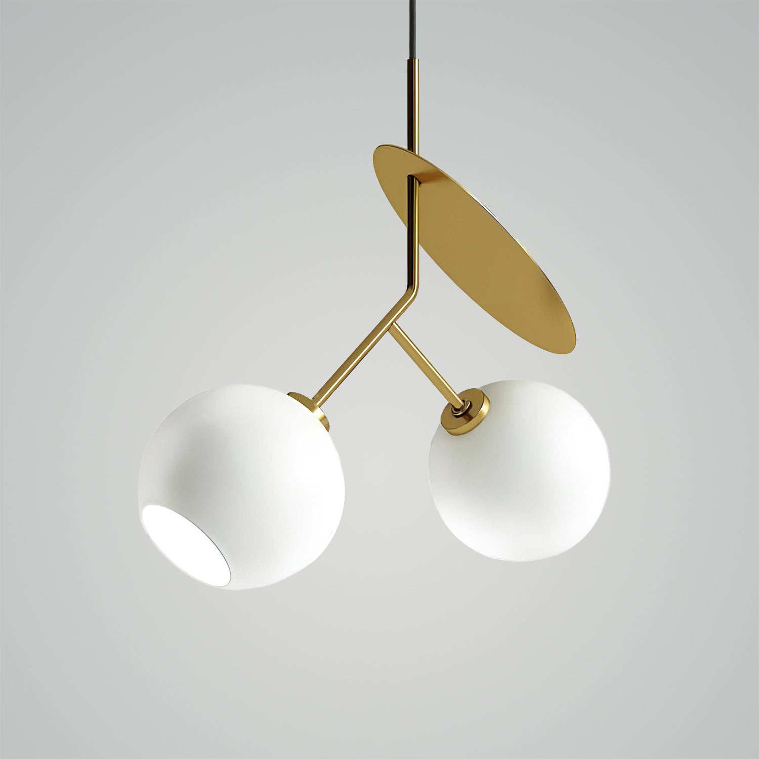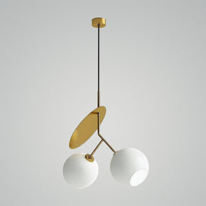 Illuminate your home with the celestial charm of the Cherry Pendant Light. This innovative design features two opal glass spheres delicately balanced on a sleek golden framework, mimicking the ethereal dance of celestial bodies. The smooth, round shapes are reminiscent of a serene full moon, while the golden oval adds a touch of cosmic elegance. Perfect for modern interiors, this pendant light casts a soft, ambient glow, creating an atmosphere of sophisticated tranquility in any space it adorns.