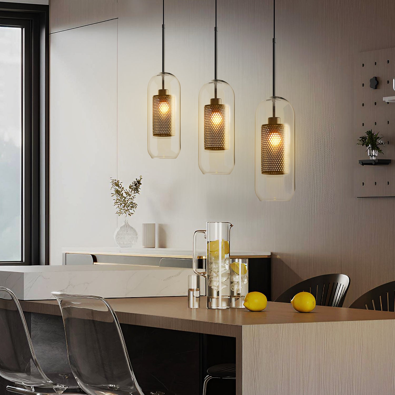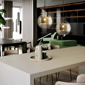 Introducing the Chiswick Glass Pendant Light – a harmonious blend of classic charm and contemporary flair. With its clear glass orbs and striking copper accents, this pendant light casts a warm, diffused light, perfect for creating an inviting atmosphere. The mesh-like texture within the copper fixtures adds an element of vintage sophistication, making it a versatile addition to both retro-inspired and modern decors. Illuminate your space with the understated elegance of the Eclipse Sphere Pendant Light, a timeless piece that exudes style and warmth.