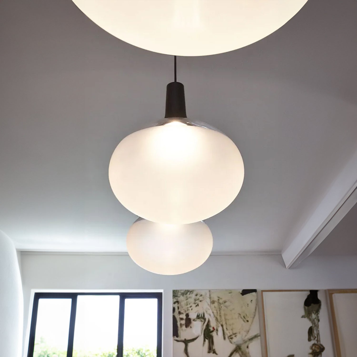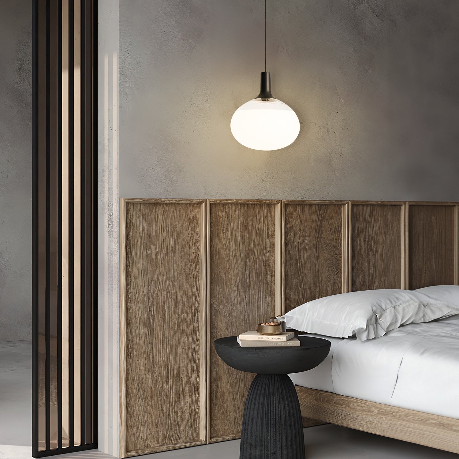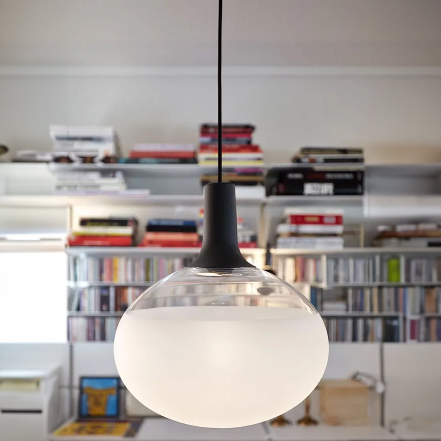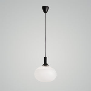 Introducing the Dee Glass Pendant Lamp, an embodiment of sleek sophistication and refined illumination. This pendant lamp features a pristine frosted glass globe that hangs with an air of grace from a slender black cord. The contrast of the opaque glass against the stark black fitting creates a modern, monochromatic aesthetic. Ideal for those who favor clean lines and a timeless design, the Luna Sphere Pendant is versatile enough to complement any room, casting a soft, ambient light that envelops your space in a warm, inviting glow. Perfect for setting a relaxed mood in dining areas or adding a touch of chic minimalism to a living room, this pendant is sure to enhance your home with its simple elegance.