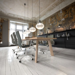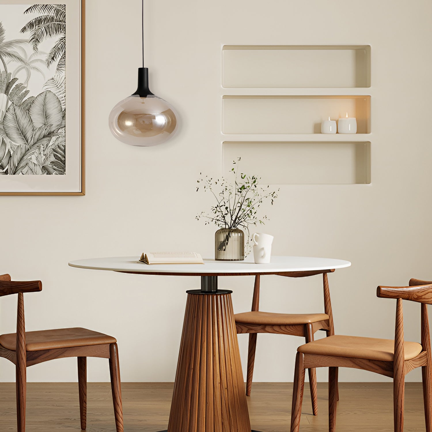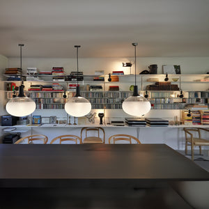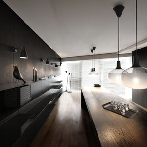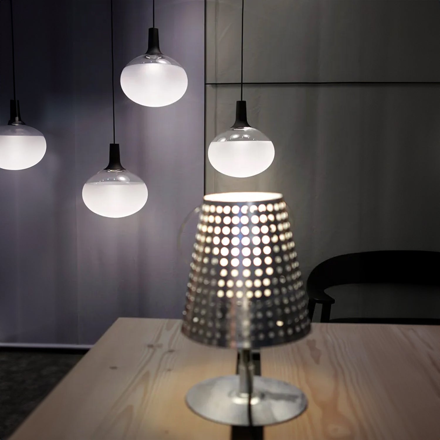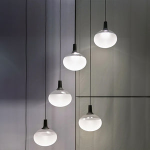 Introducing the Dee Glass Pendant Lamp, an embodiment of sleek sophistication and refined illumination. This pendant lamp features a pristine frosted glass globe that hangs with an air of grace from a slender black cord. The contrast of the opaque glass against the stark black fitting creates a modern, monochromatic aesthetic. Ideal for those who favor clean lines and a timeless design, the Luna Sphere Pendant is versatile enough to complement any room, casting a soft, ambient light that envelops your space in a warm, inviting glow. Perfect for setting a relaxed mood in dining areas or adding a touch of chic minimalism to a living room, this pendant is sure to enhance your home with its simple elegance.