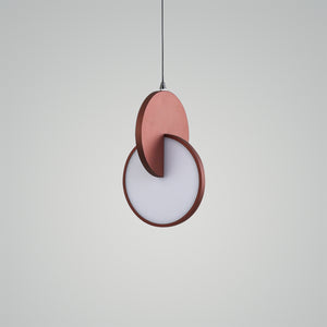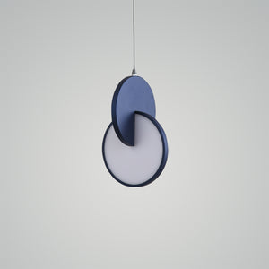 The Eclipse pendant light draws celestial inspiration, reflected in both its name and design. The surface metal and acrylic discs interact, dissect, and obscure, simultaneously eclipsing and revealing its illumination.