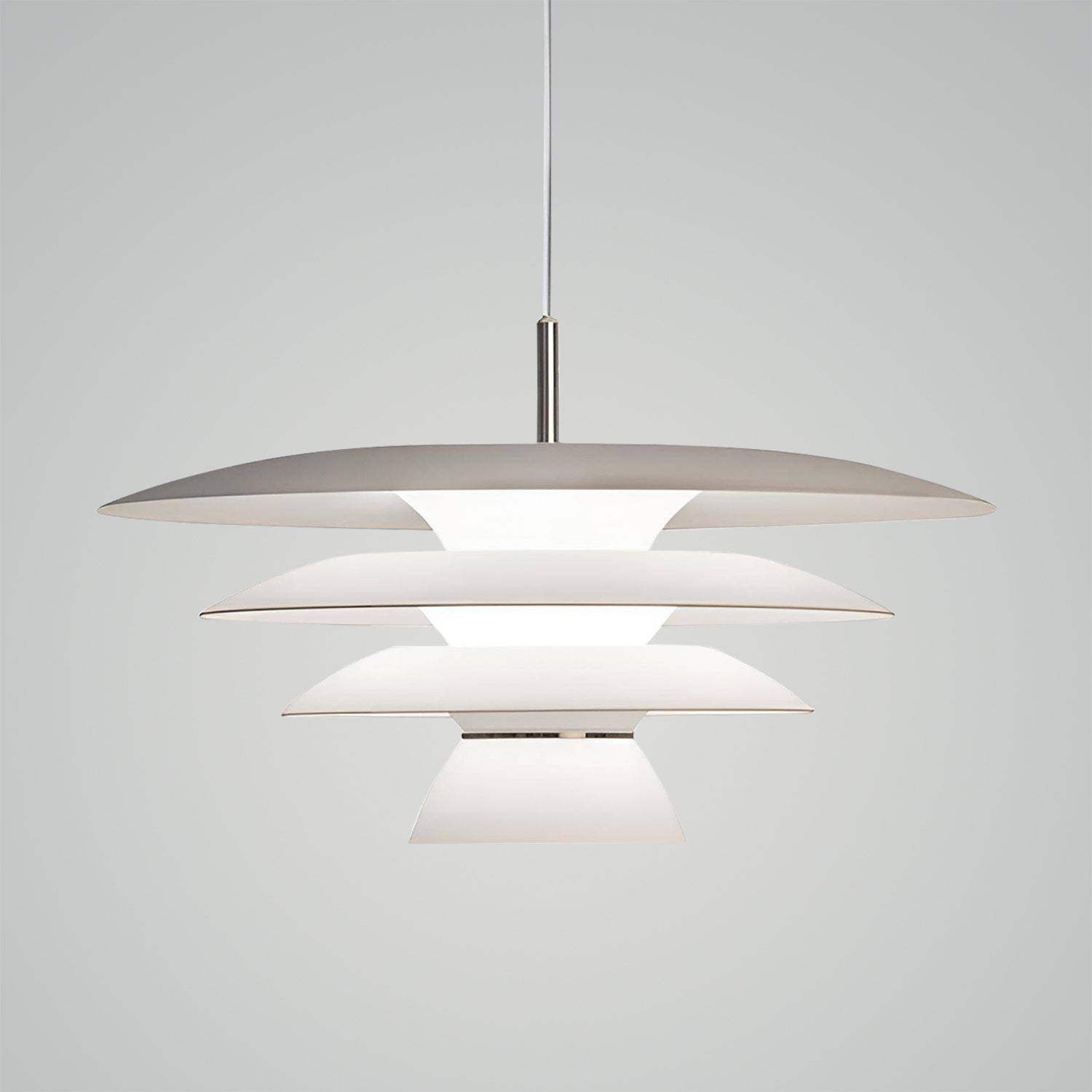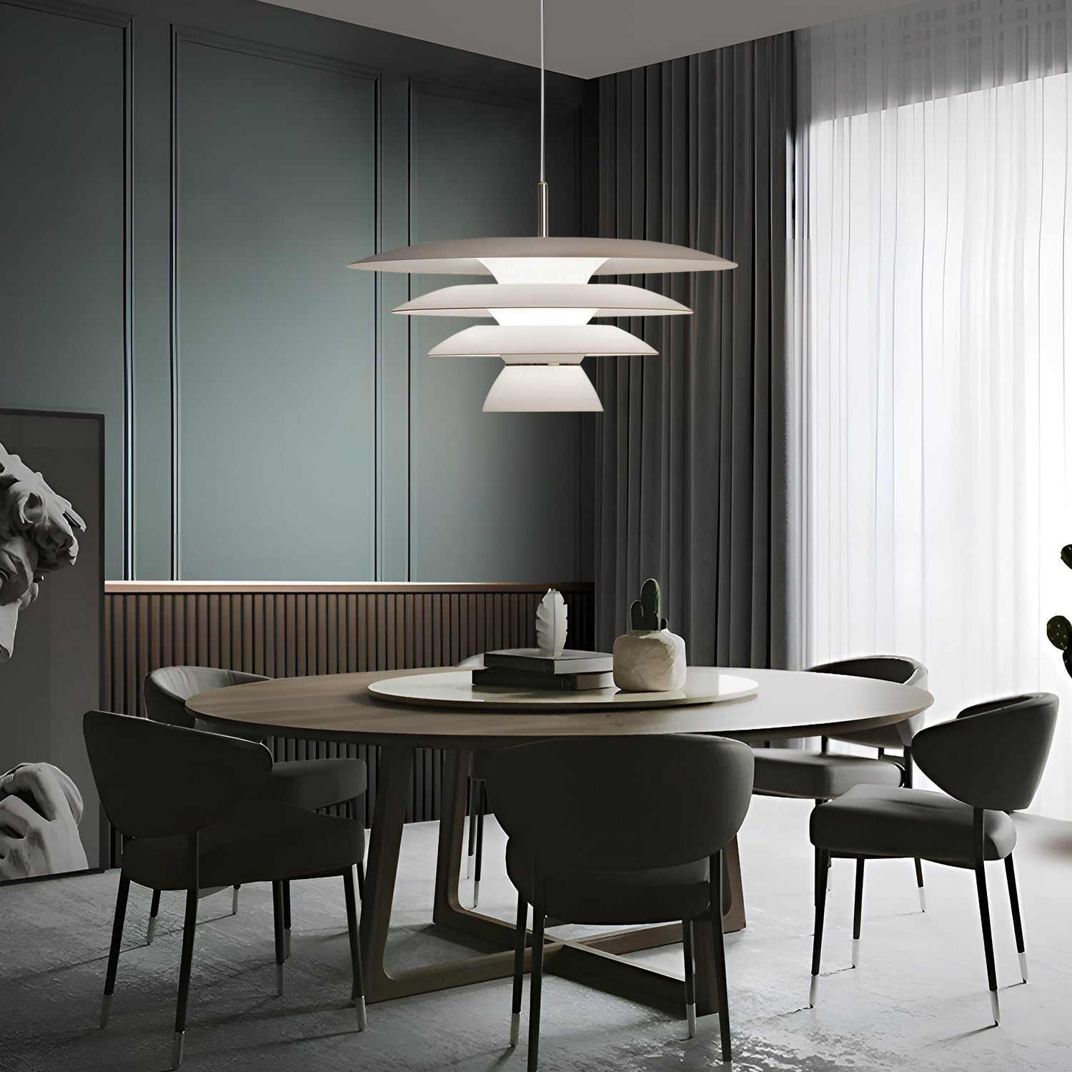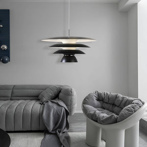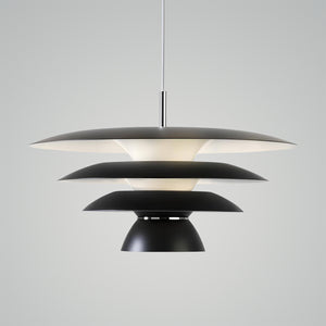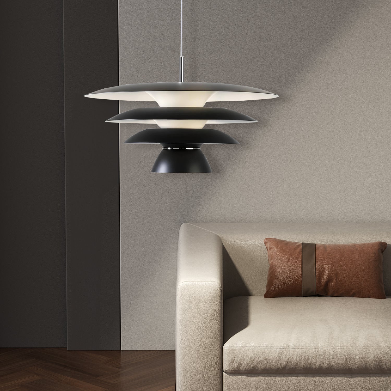 The Eclipse Tier Pendant Light is a stunning display of architectural beauty and lighting innovation, designed for those who appreciate the art of subtlety. This lamp features a series of tiered discs in a sleek, matte finish that cascade downwards, each layer strategically placed to diffuse light softly and evenly. The modern silhouette and monochrome palette make it a versatile addition to any contemporary space, from a cutting-edge dining room to a minimalist kitchen. The Eclipse Tier Pendant is not just a source of light but a sculptural statement that captures the eye, inviting contemplation and conversation. Illuminate your home with this elegant and stylish piece that's as much about aesthetics as it is about providing ambient light.