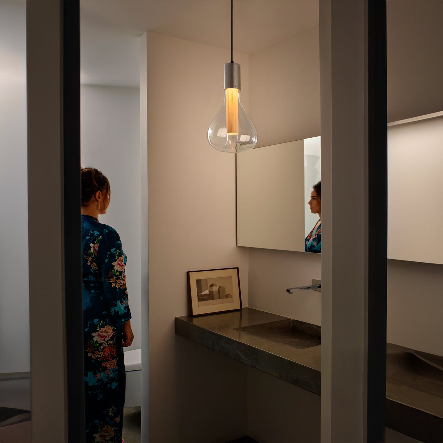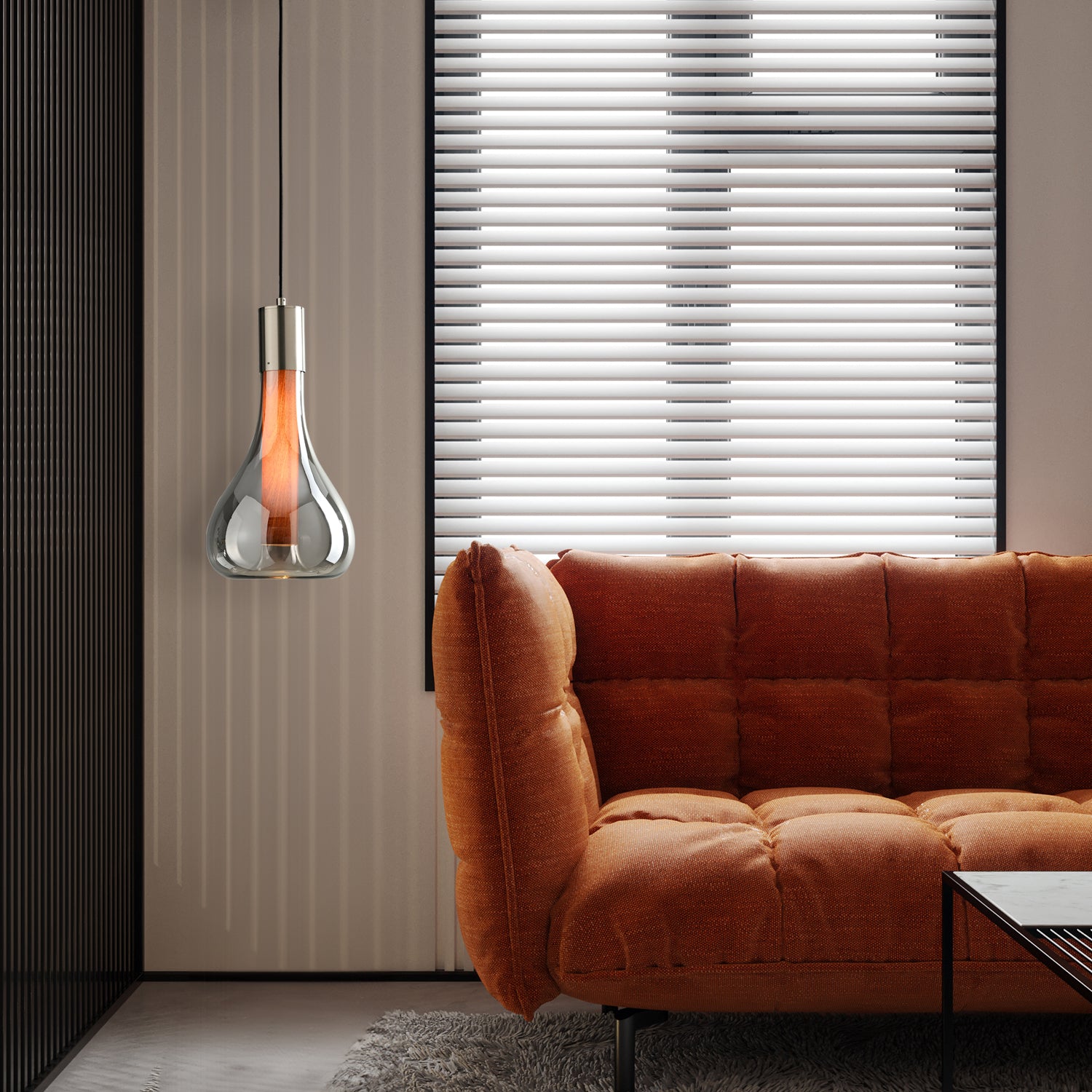 This ERIS SUSPENSION Pendant Light, with its unique design charm, gently guides the light through the translucent wood grain, presenting a rich and dreamlike lighting effect within the glass container. This lighting effect is like a performance of art, unfolding a magnificent and enchanting visual spectacle in the space.