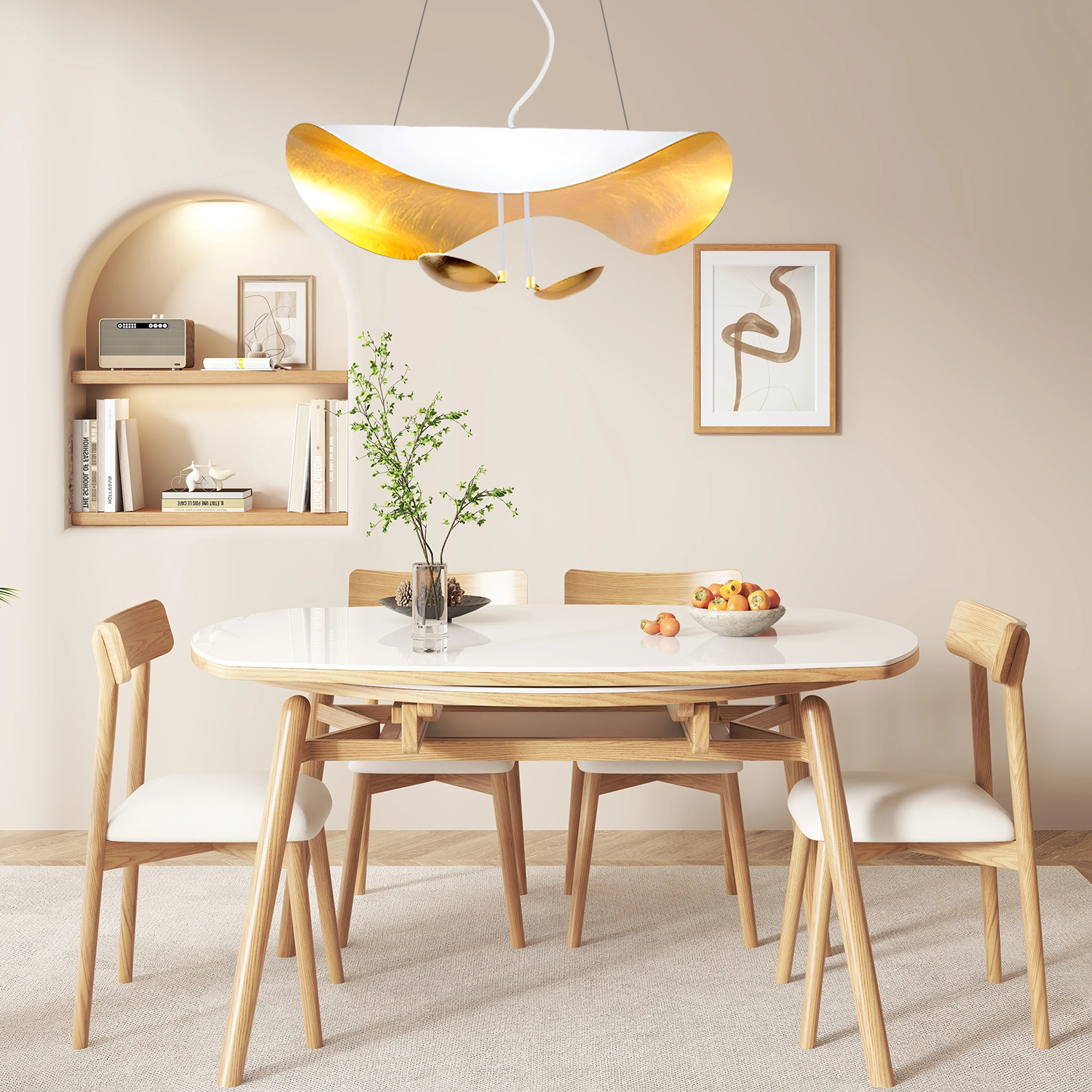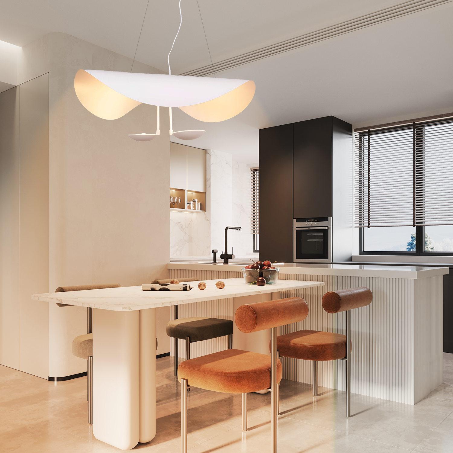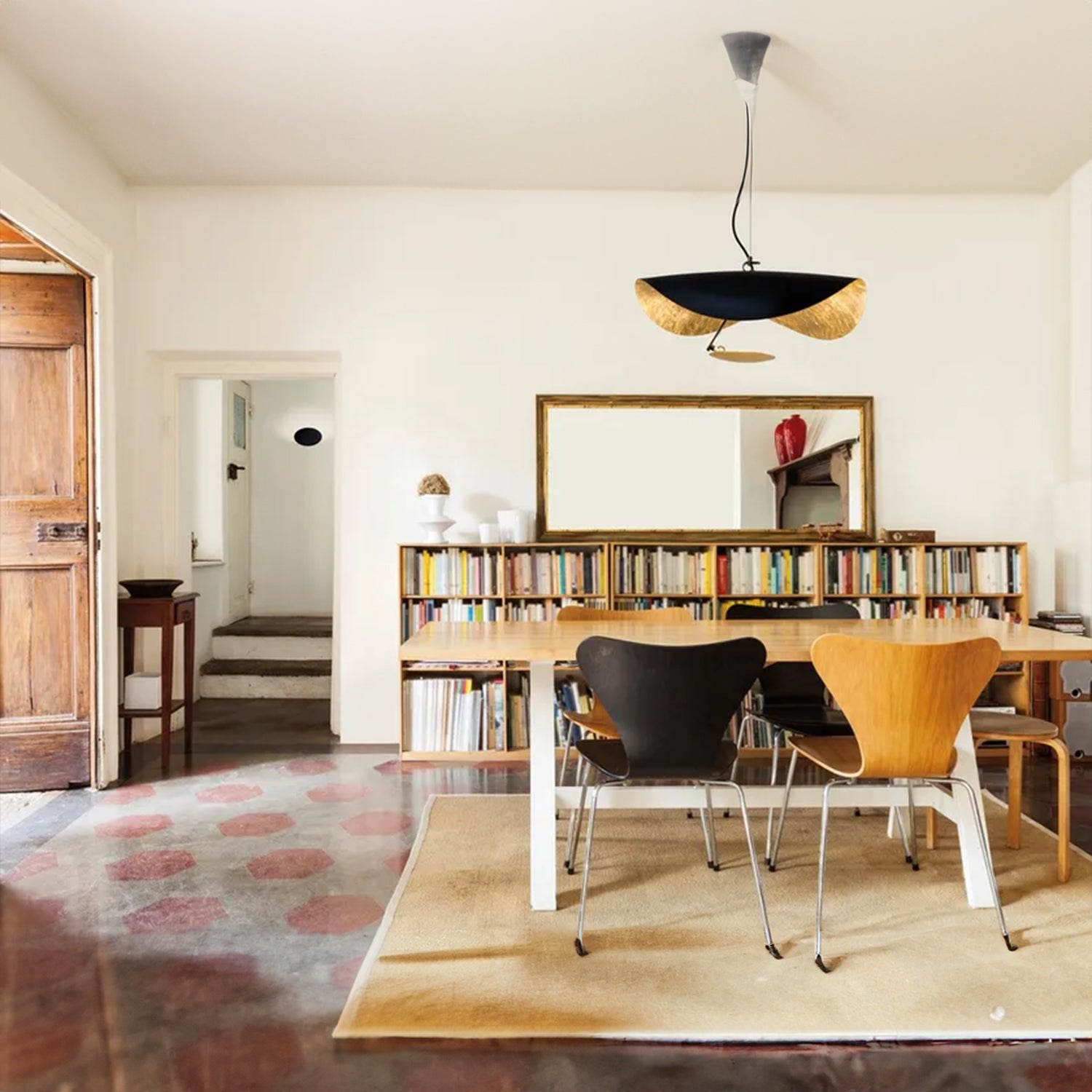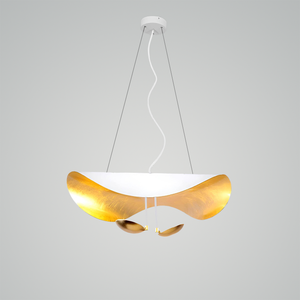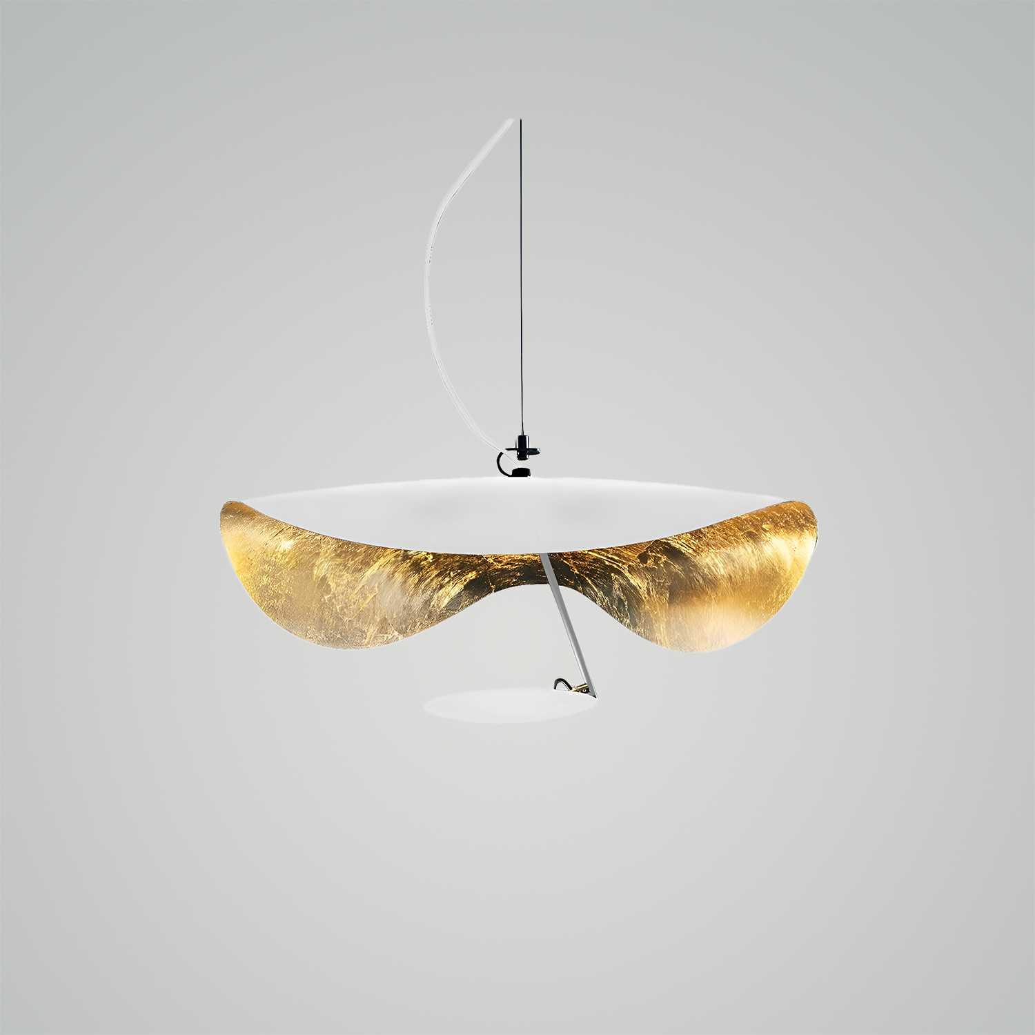 Introducing the "Giorgio Pendant Light," a masterpiece that captures the essence of modern elegance with a touch of celestial wonder. The sleek, black exterior of this pendant light is perfectly contoured to resemble the majestic manta ray, while its interior boasts a radiant golden finish that casts a warm, upward glow, reminiscent of the natural phenomenon of an aurora. This sophisticated light fixture is ideal for those who appreciate art in their lighting. It's not just a source of illumination; it's a conversation piece that adds a dramatic flair to any contemporary space. Illuminate your home with the luxurious warmth of the Aurora Crescent Pendant, where design meets the art of light.