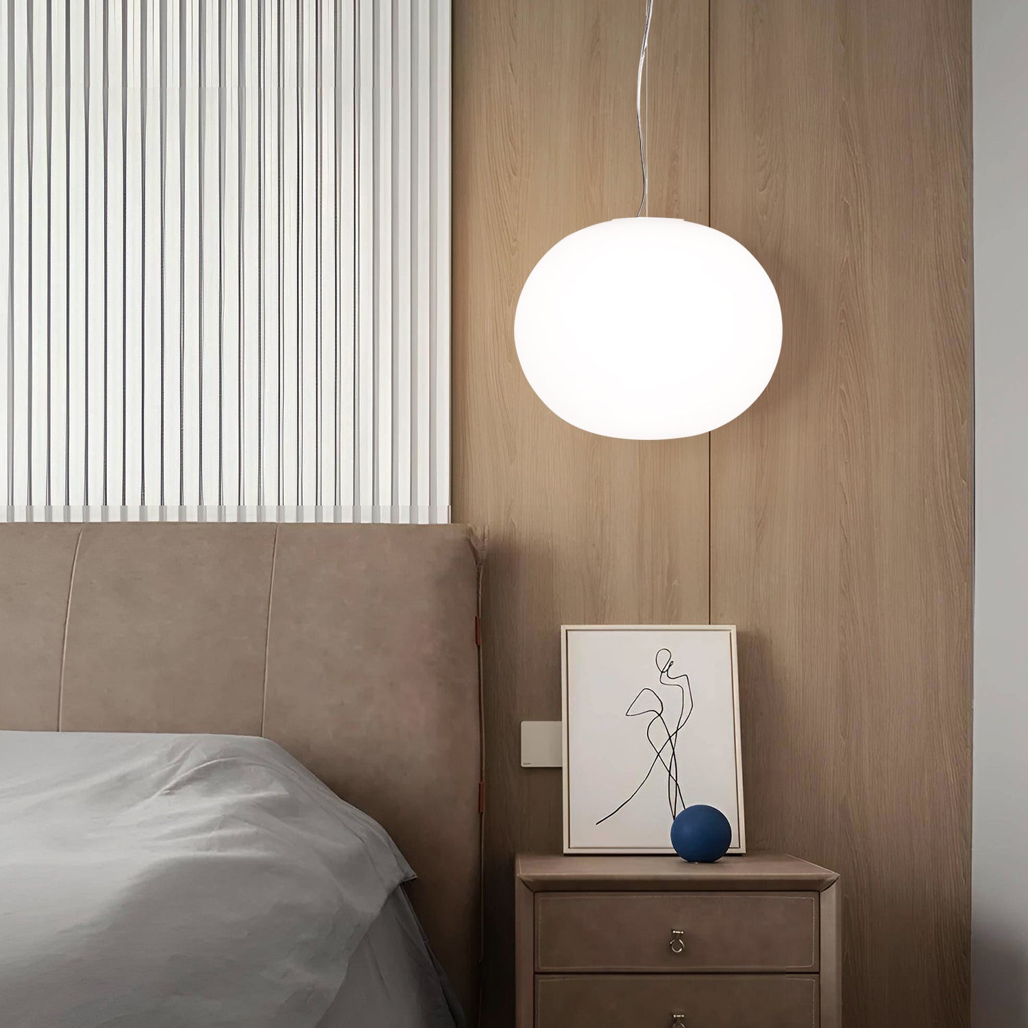 Introducing the 'Globall Pendant Lamp', where timeless design meets the purity of light. This pendant lamp, with its pristine spherical shape, is reminiscent of the serene glow of the moon. A harmonious addition to any space, it provides a diffuse light that can set a tranquil tone for intimate gatherings or act as a beacon of calm in a busy household. The sleek, sinuous cable adds a touch of elegance and modernity, making it a versatile choice for both contemporary and traditional interiors. Let the Luna Essence Pendant Light bathe your home in a soft, celestial radiance.