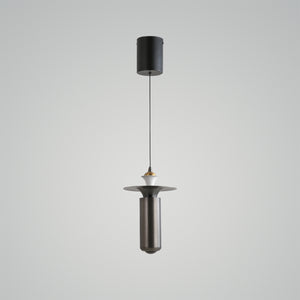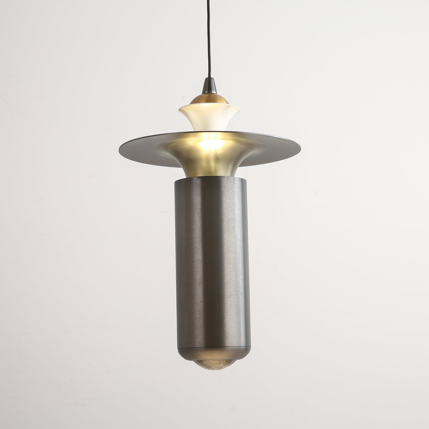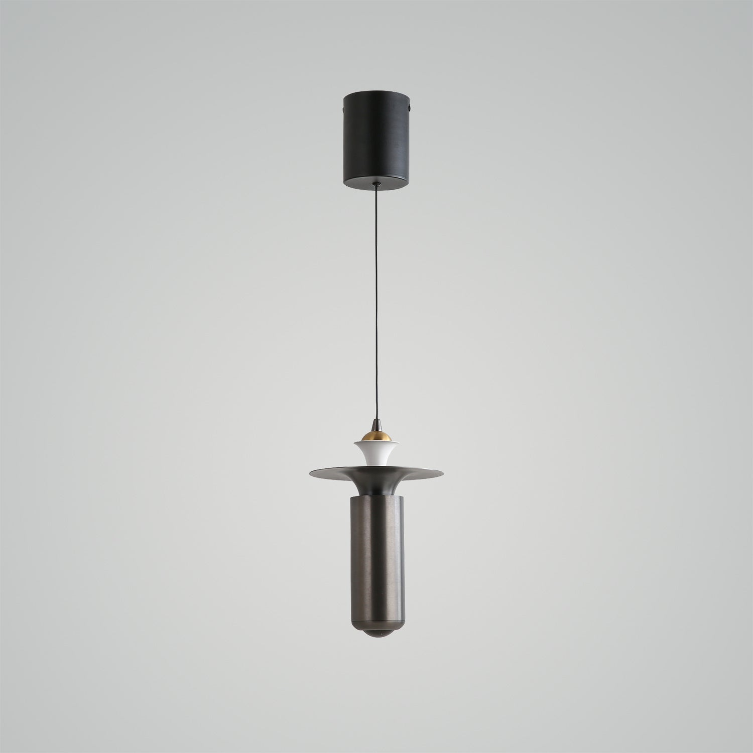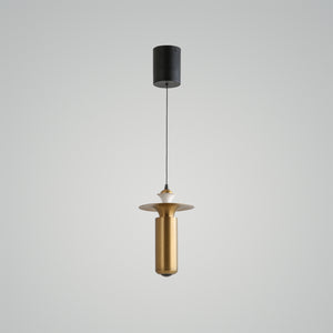 The Golden Halo Bedside Pendant Light features a sophisticated design that combines sleek modern aesthetics with a touch of vintage charm. This pendant showcases a cylindrical brass body with a unique halo-shaped top that elegantly diffuses light. Its matte black ceiling mount contrasts beautifully with the warm golden hue, making it a striking addition to any bedroom decor. Perfect for bedside lighting, the Golden Halo Pendant Light adds a refined touch and creates a captivating focal point, seamlessly blending style and function for a cozy and elegant ambiance.
