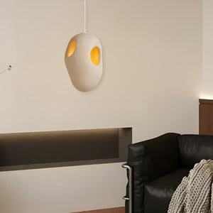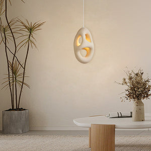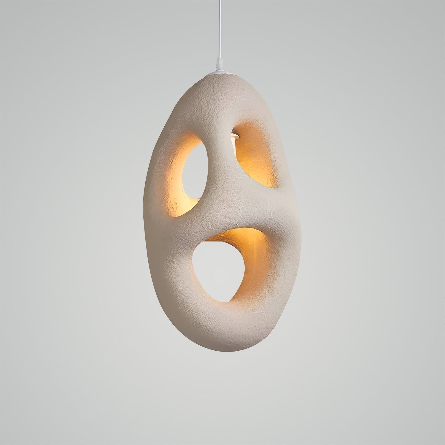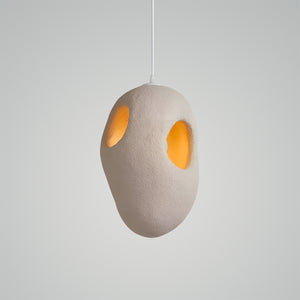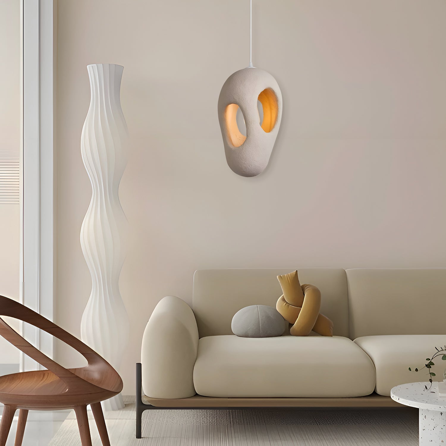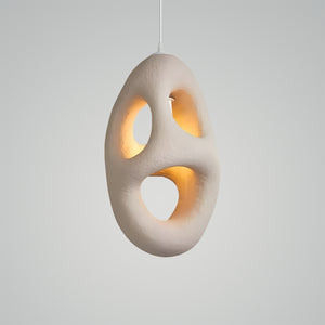 Introducing the 'Hand-Built White Pendant Lamp', a masterpiece of handcrafted artistry inspired by the wabi-sabi tradition. This pendant lamp features a beautifully irregular shape with soft curves and a textured white exterior that contrasts with a warm, golden interior glow. Designed to be a statement piece, it not only illuminates your space with a cozy light but also serves as a sculptural element that celebrates the beauty of natural imperfection. Perfect for adding a touch of organic elegance to any contemporary interior.