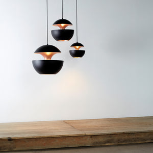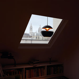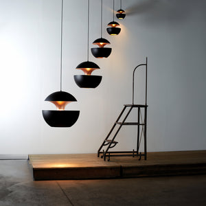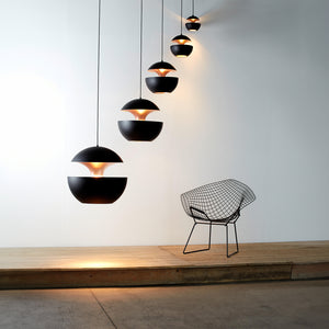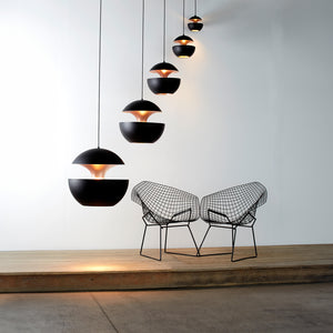 Introducing the "HERE COMES THE SUN Pendant Light - Eclipse Radiance Pendant Light ," a symphony of design that captures the allure of celestial events in a modern minimalist light fixture. Embodying the sleek contrast of a solar eclipse, this pendant features a bold matte black exterior that cradles a warm copper-toned interior, reflecting a cozy, ambient glow reminiscent of a sunset's embrace. Its elegant curves and clean lines make it a versatile addition to any contemporary space, offering a touch of sophistication over a dining table, a central focus in a living room, or a wecoming light in an entryway. The "Eclipse Radiance Pendant" doesn't just provide light; it adds an atmospheric presence that transforms the ordinary into the extraordinary.