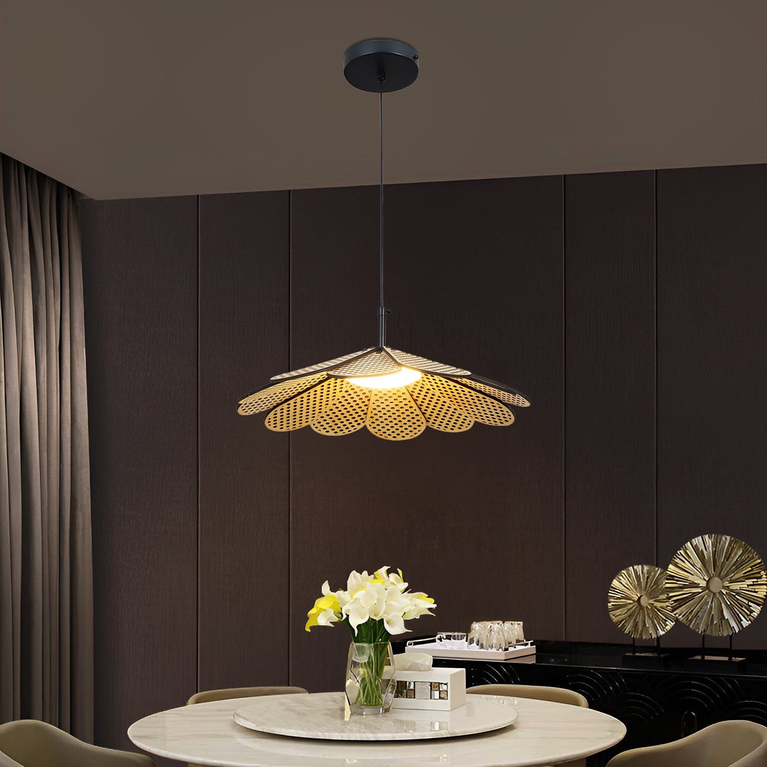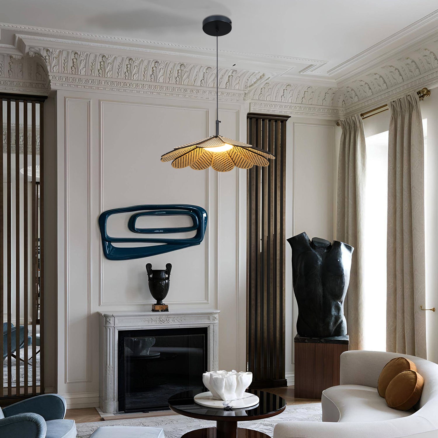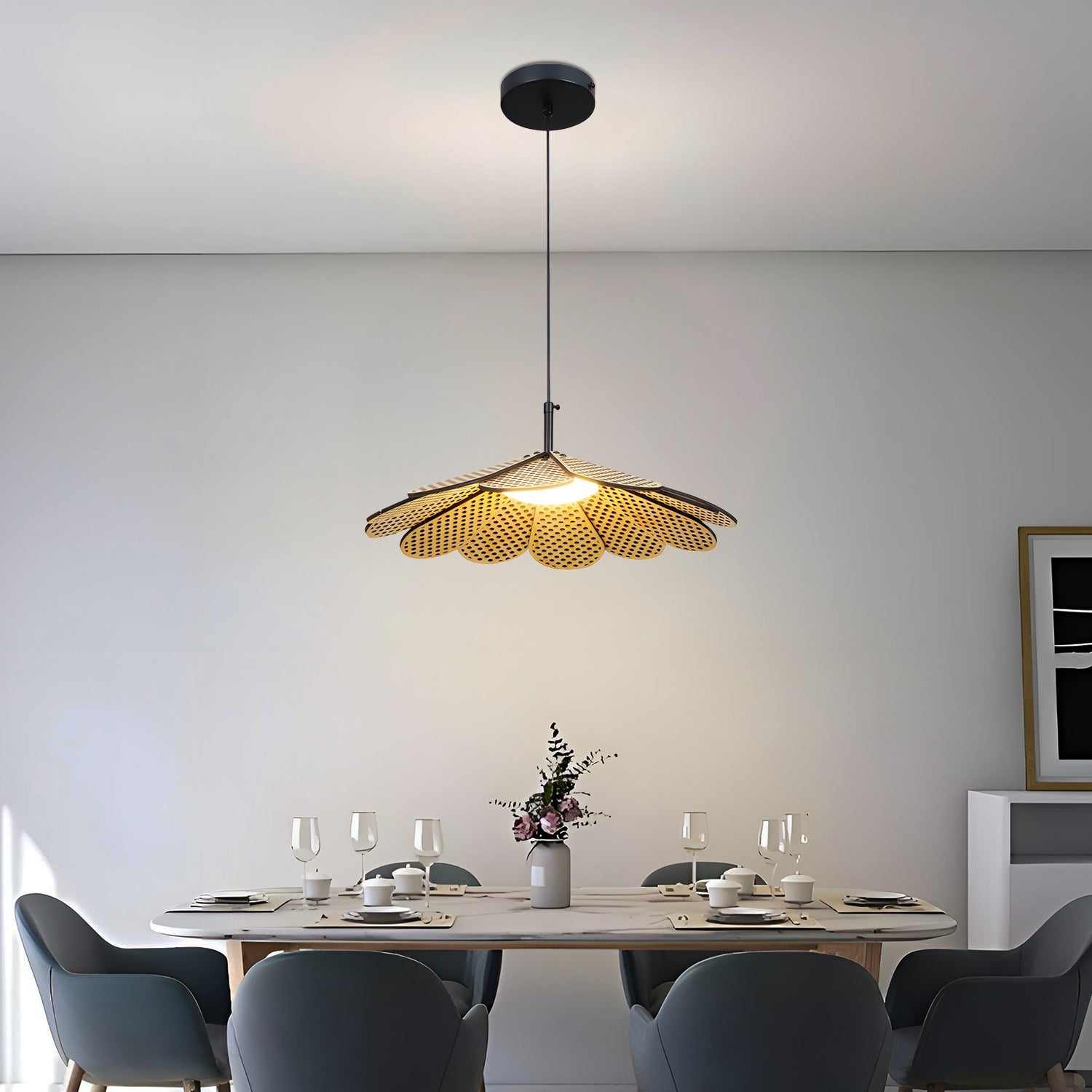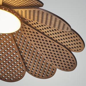 Discover the Hollyhock Pendant Light a testament to the beauty of craftsmanship and natural materials. Each lamp is a work of art, featuring a tiered array of delicately woven cane panels that cast a warm, ambient light, creating a serene and inviting atmosphere. The intricate patterns and organic textures bring a touch of nature indoors, perfect for enhancing the aesthetic of any living space. Suspended elegantly from a sleek cord, this lamp is a versatile addition to your decor, equally at home in a relaxed living area or gracing the space above your dining table. Illuminate your home with the soft, earthy tones of the Cane Array Pendant Lamp and embrace a sense of natural elegance.