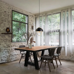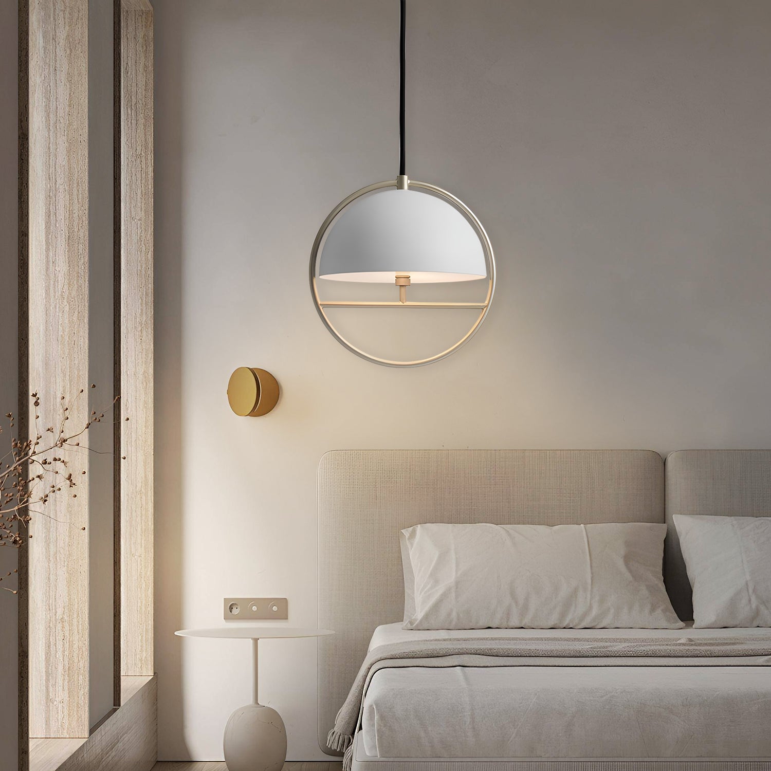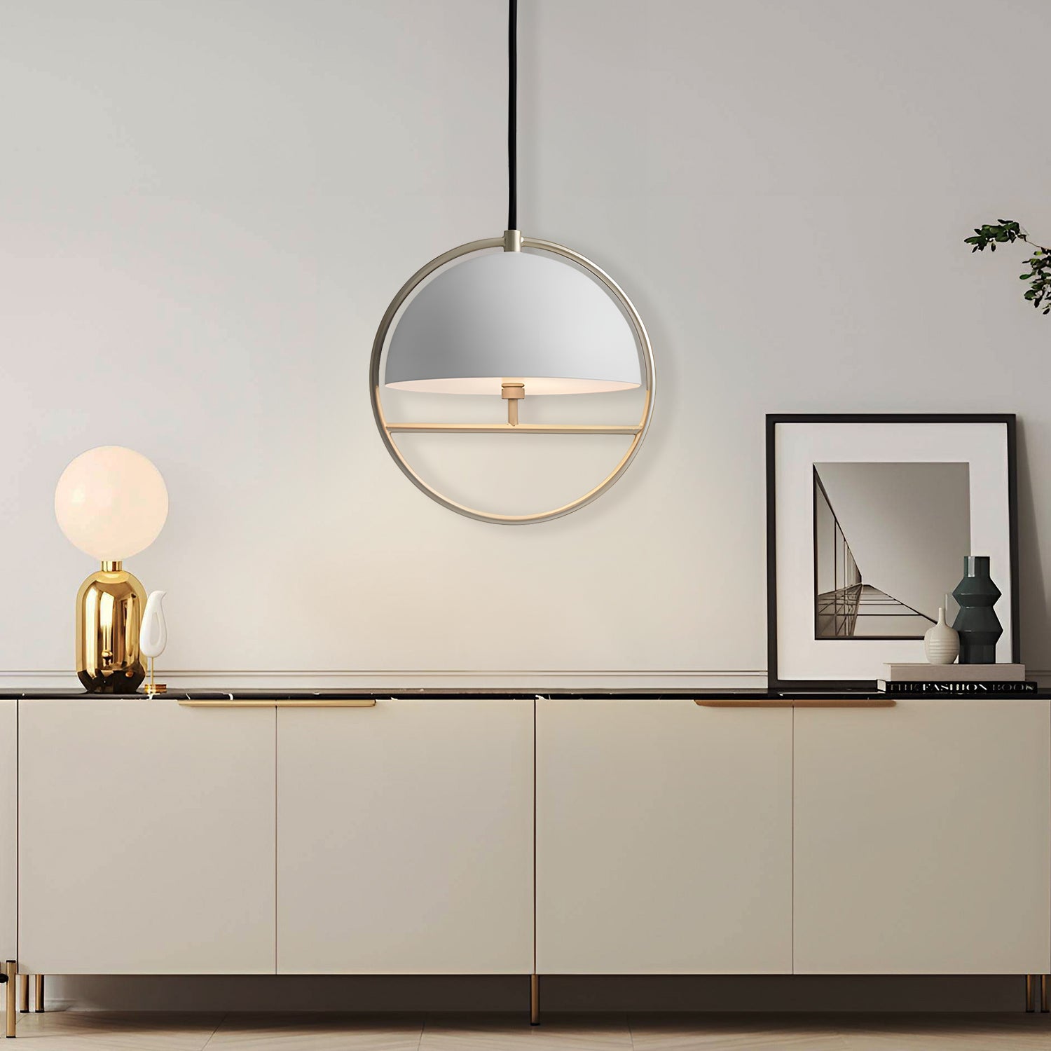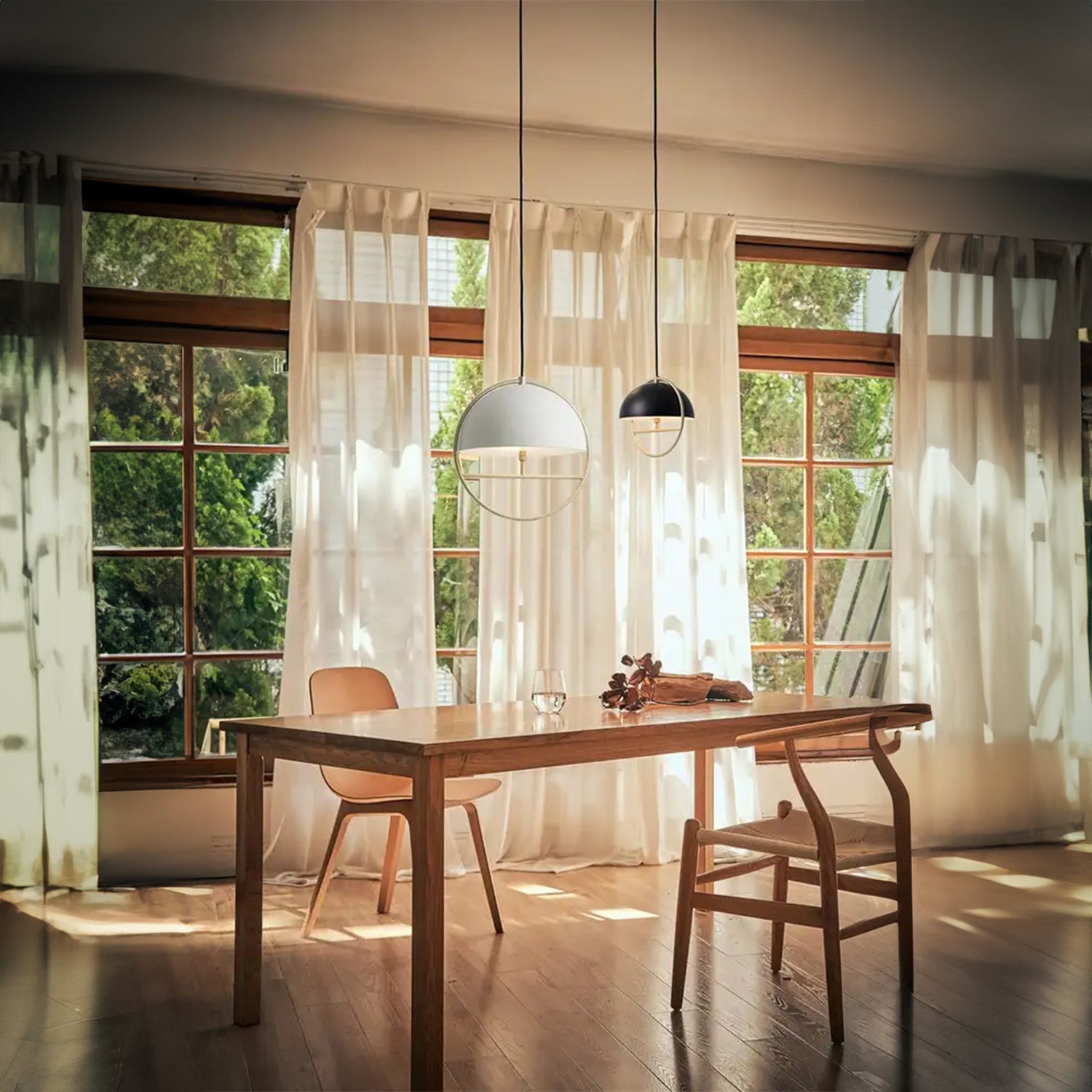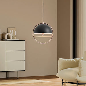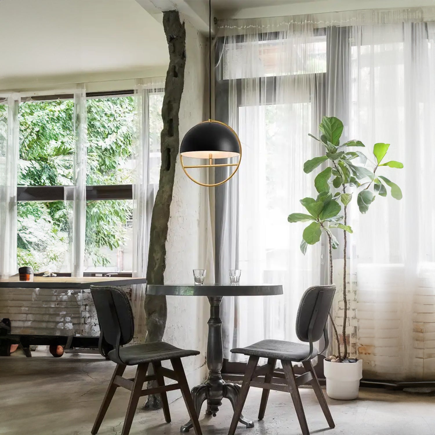 Introducing the HUAN Pendant Lamp where modern design meets cosmic elegance. This stunning luminaire features a bold black dome cradled by a delicate golden ring, mirroring the harmonious alignment of a solar eclipse. Perfect for contemporary interiors, its radiant glow promises to bathe any room in a soft, ethereal light, creating an atmosphere filled with wonder and sophistication. Whether it's the focal point of a minimalist living room or an enchanting addition to a chic dining area, the Celestial Halo Pendant is sure to captivate and illuminate. Transform your space with the light of the cosmos.