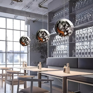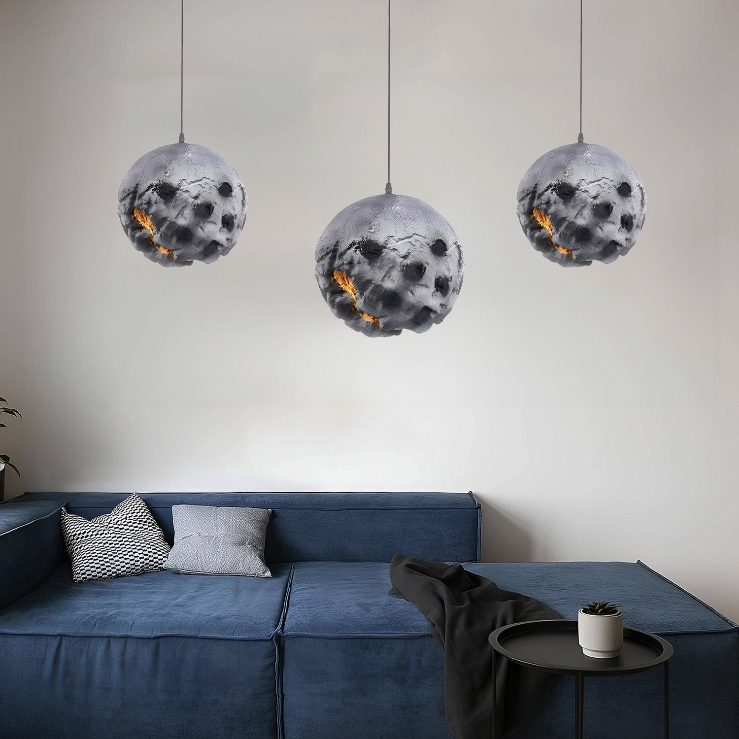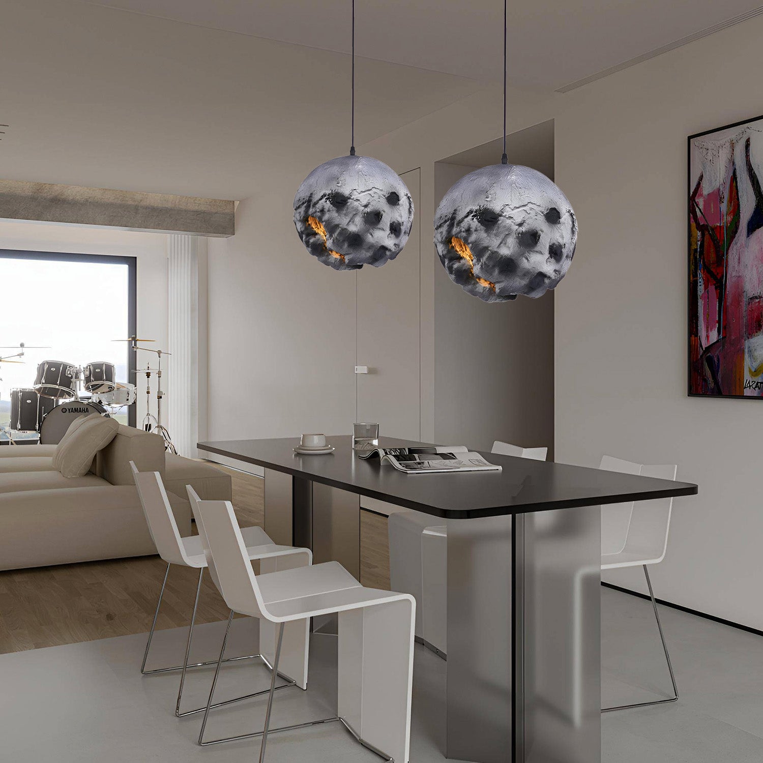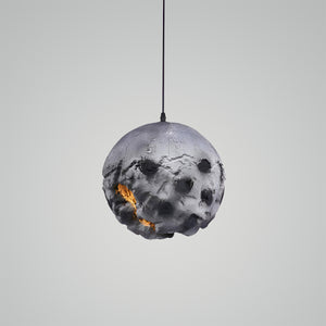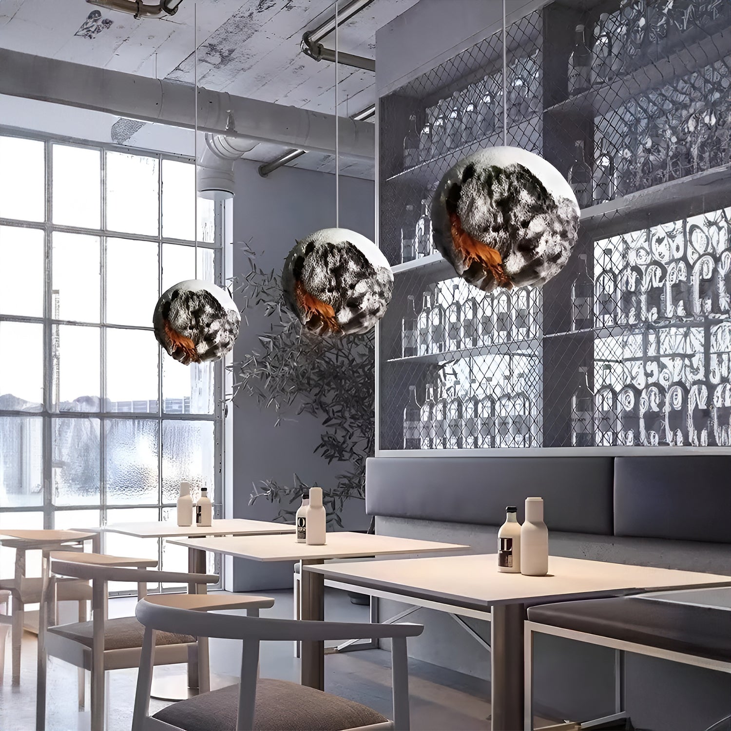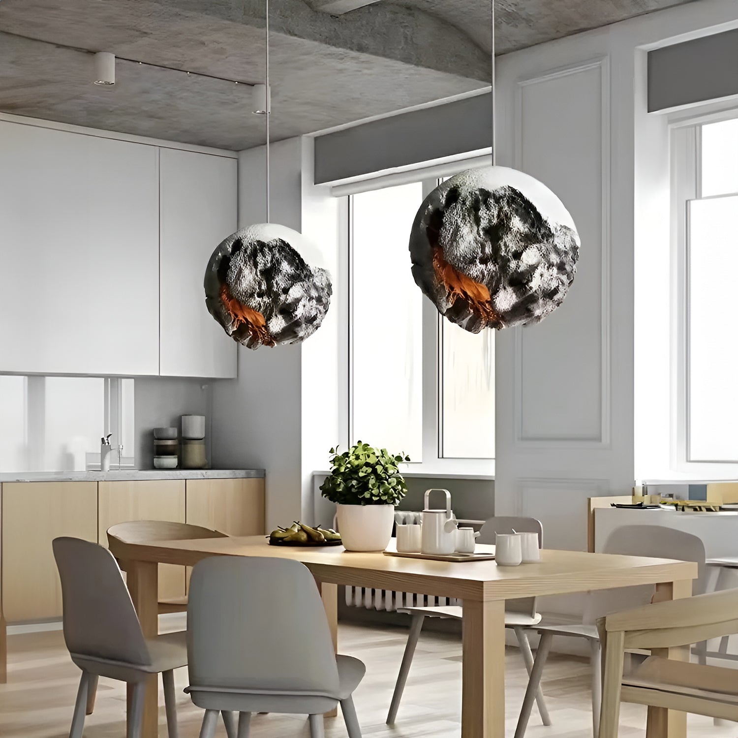 Discover the 'Irregular Planet Pendant Lamp', a masterpiece inspired by the raw beauty of the cosmos. This pendant lamp, with its irregular surface and contrasting textures, evokes the mysterious allure of distant planets. The tactile finish in stark monochrome with a hint of fiery orange captures the imagination and brings a touch of the ethereal to your living space. Each lamp is unique, reflecting the wabi-sabi philosophy of embracing the perfectly imperfect. Illuminate your home with this celestial-inspired creation and add a conversation piece that lights up both the room and the imagination.