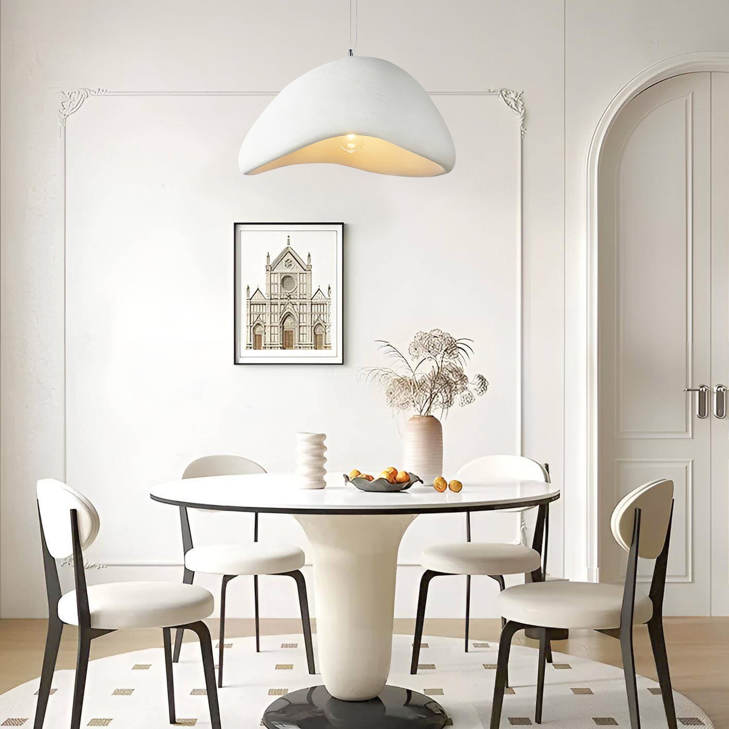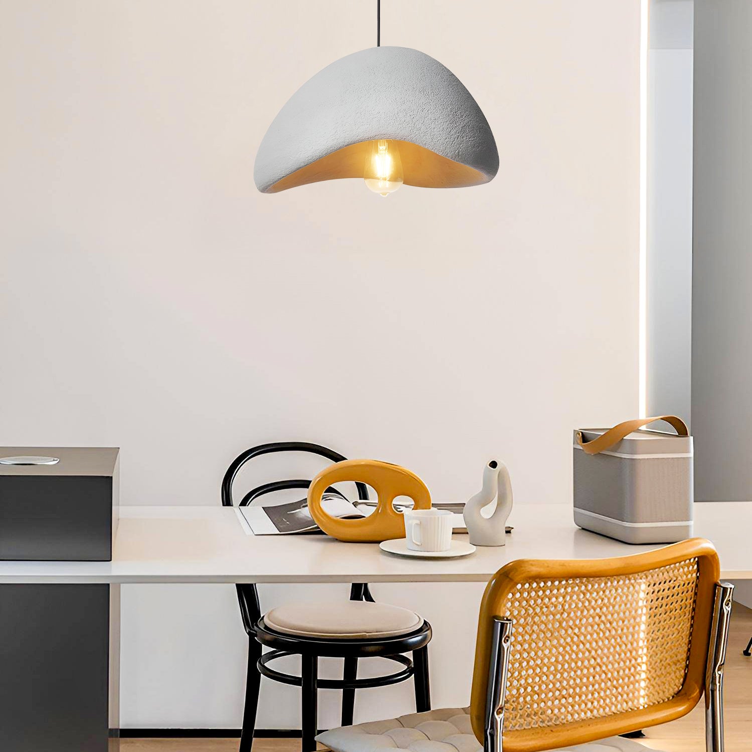 Introduce a touch of calmness to your decor with the "Khmara Halia Pendant Lamp A," a lighting piece inspired by the gentle forms of nature. This pendant light is designed to resemble a tranquil cloud, with a smooth, curved surface in a soothing matte finish. The interior's golden hue reflects a warm, soft light that mimics the comforting glow of sunlight piercing through a soft cloud cover. Ideal for creating a relaxed atmosphere in any setting, this pendant is perfect for living rooms, bedrooms, or quiet reading corners. With its simple yet captivating design, the Serenity Canopy Pendant is an invitation to bring the peace and quiet of a serene sky into your home.