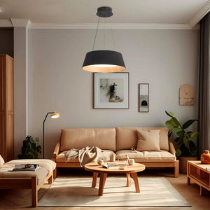 Elevate your space with the Modern Ribbed Pendant Light, where contemporary design meets the warmth of classic illumination. This pendant light boasts a commanding presence with its bold, ribbed exterior that adds a dynamic texture to any room. The deep, rich tones of the outer shell contrast beautifully with the golden glow from within, providing a focused light that is both functional and atmospheric. Perfect for hanging above a dining table or a cozy reading nook, this pendant light is more than just a fixture; it's a statement piece that doesn't compromise on practicality. With its easy-to-adjust suspension, you can set the mood at any height. Bring home the Contour Radiance Pendant Light and bask in the sophistication it brings to your daily living.