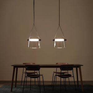 The design concept of the series is based on penetrating forms. The light source boldly passes through large amounts of smooth, hand-blown glass, showcasing the dramatic tension inherent in the design. However, the essence of the series lies in its unique structure and the refined combination of materials. The entire series has undergone technical improvements, featuring innovative connectors and replacing wooden components with metal ones. These enhancements make it easier to replace the light source and clean the fixtures. The wall-mounted fixtures can be dimmed using the integrated dimmer located on the lower part of the metal fixture, while the tabletop lamps offer touch dimming functionality.